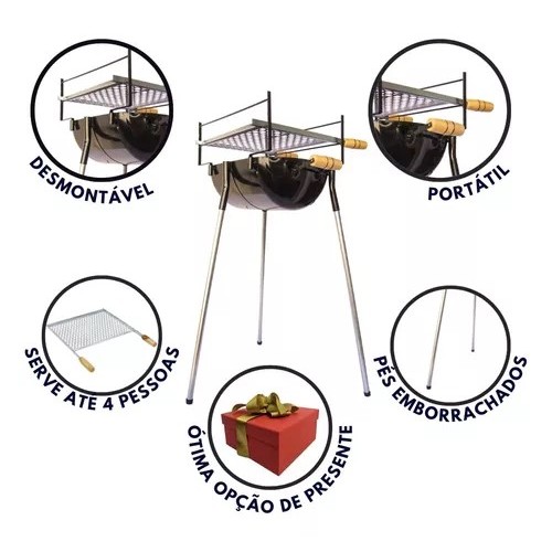 Churrasqueira Aço Pequena Com Grelha A Carvão Pés Portátil
