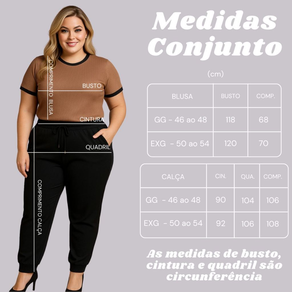 Conjunto Plus Size Feminino de Calça e Blusa. Conjunto Crepe Feminino Plus Size de Calça.