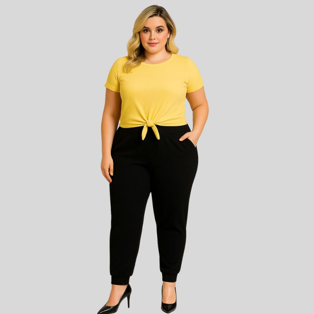 Conjunto Blusa e Calça Plus Size Feminino. Conjunto Plus Size Feminino no Crepe de Malha e Canelado.