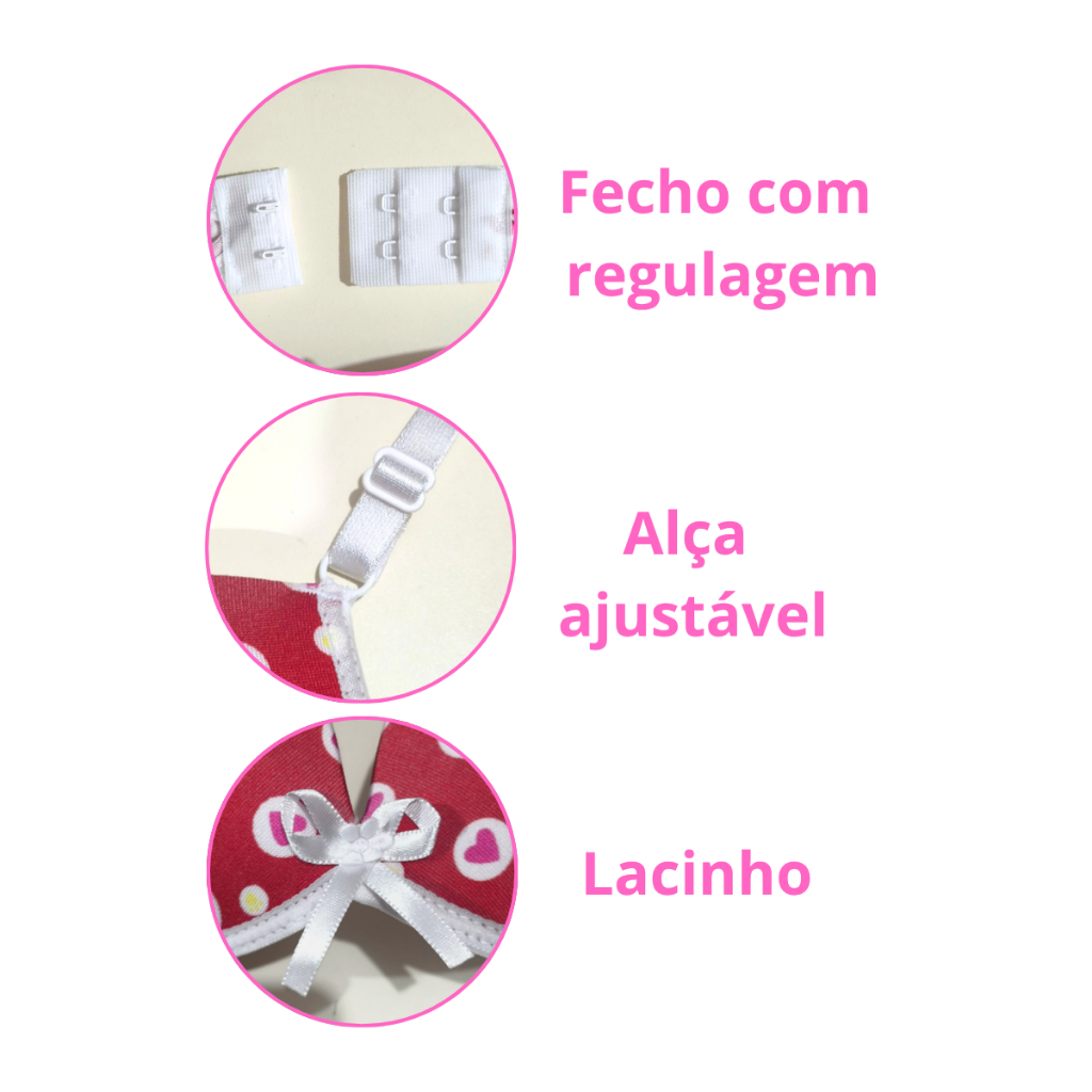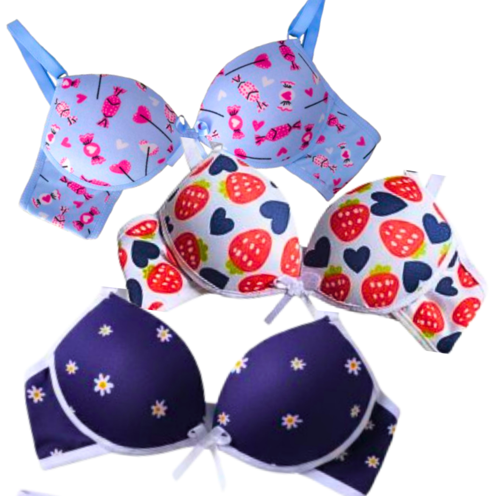 Kit 3 Sutiãs Menina Moça com Bojo Estampado 6 a 15 anos
