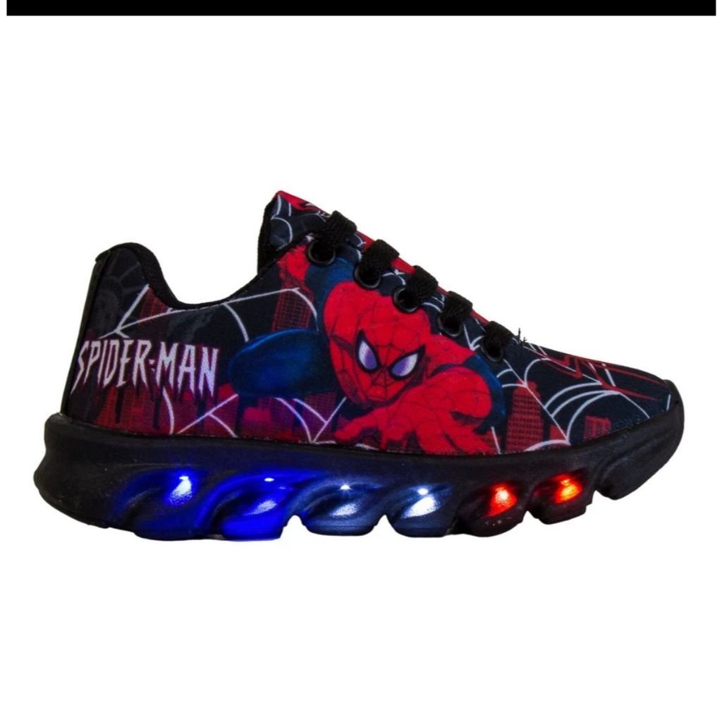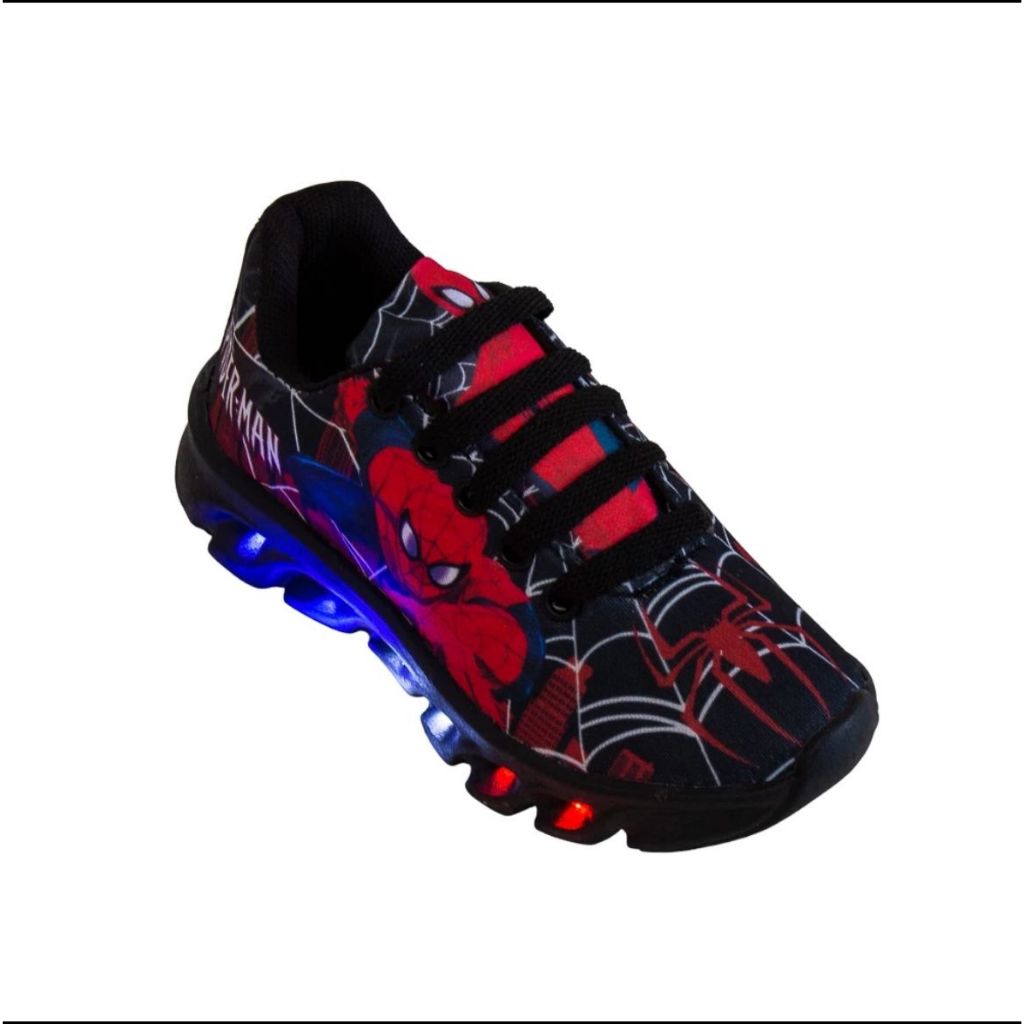 Tênis Led Infantil Casual Meninos Homem Aranha Preto Luzinha