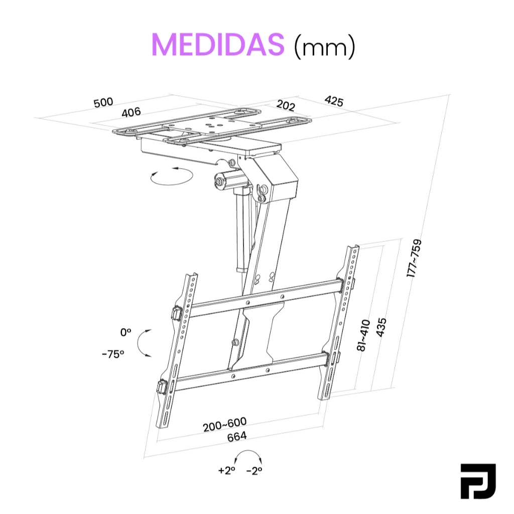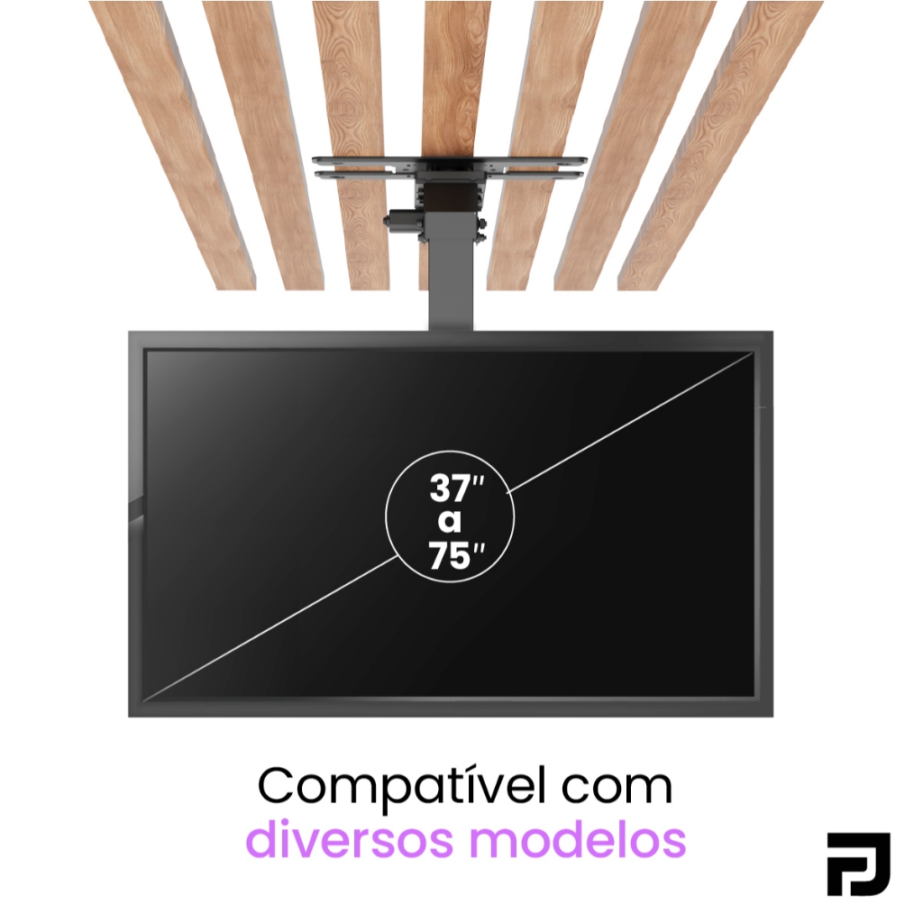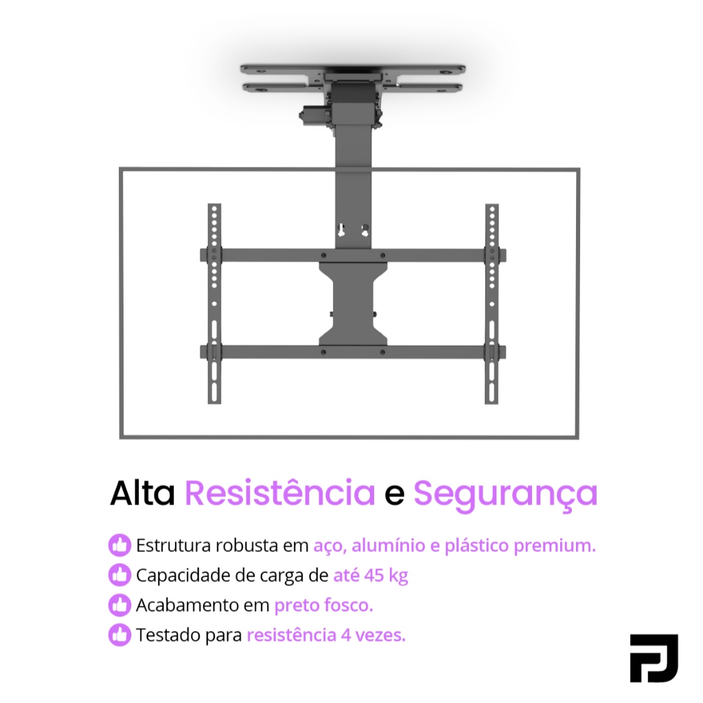 Suporte TV Teto Motorizado 37 a 75 Controle App Wifi Alexa Tuya Smartlife PandaPlus Google Rotação 180° Inclinação 75°