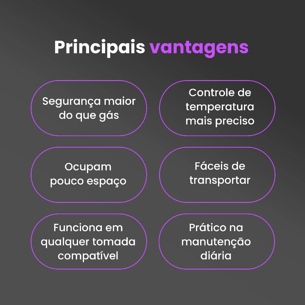 Fogão Fogareiro Elétrico Portátil Camping Inox 2 Bocas 2000W 5 Temperaturas 110V/220V Panda Plus
