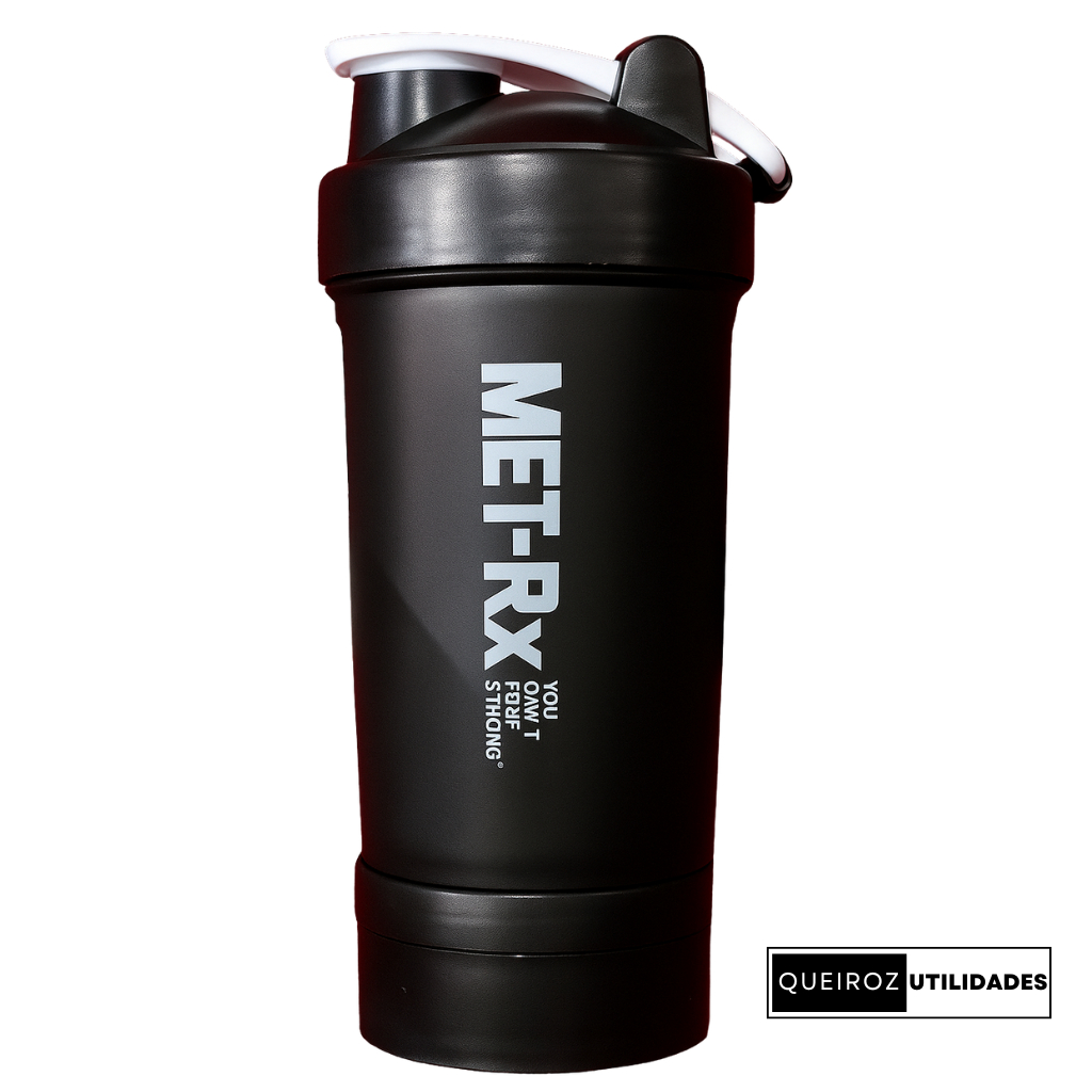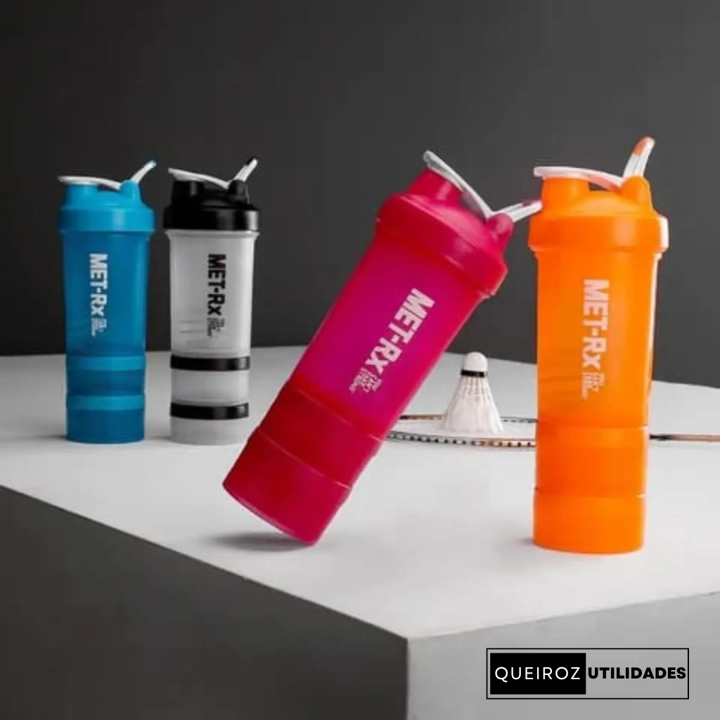 Coqueteleira Shaker Academia com Divisórias para Suplementos – 600ml – Transparente/Verde/Neon/Roxo/Vermelho/Azul/Preto