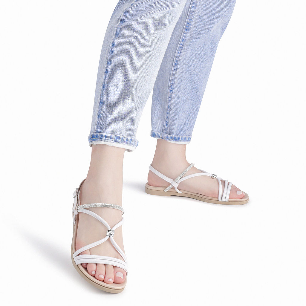Rasteirinha Mari Branco Neve com Cristal