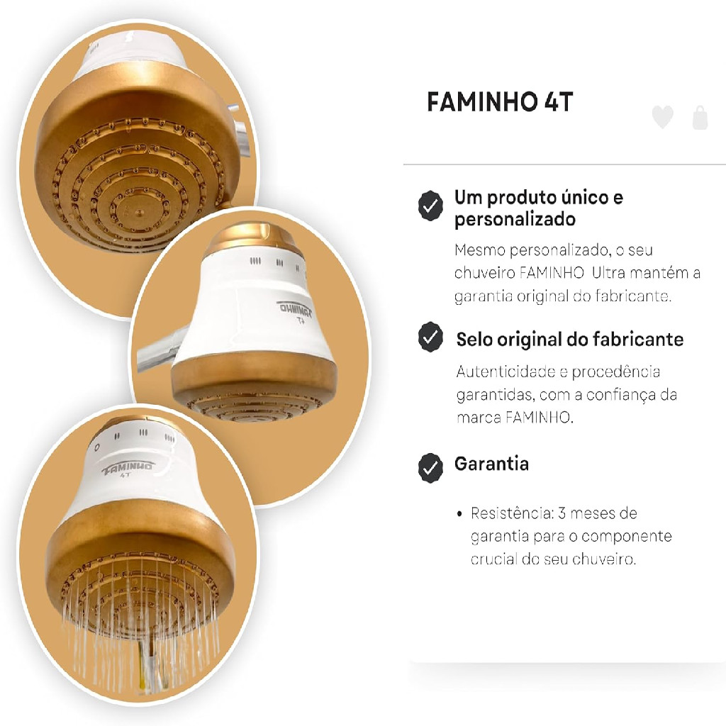 Chuveiro Elétrico Faminho 4t 6.800w 220v Dourado