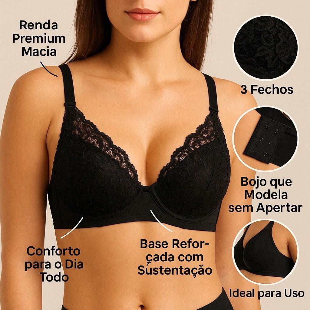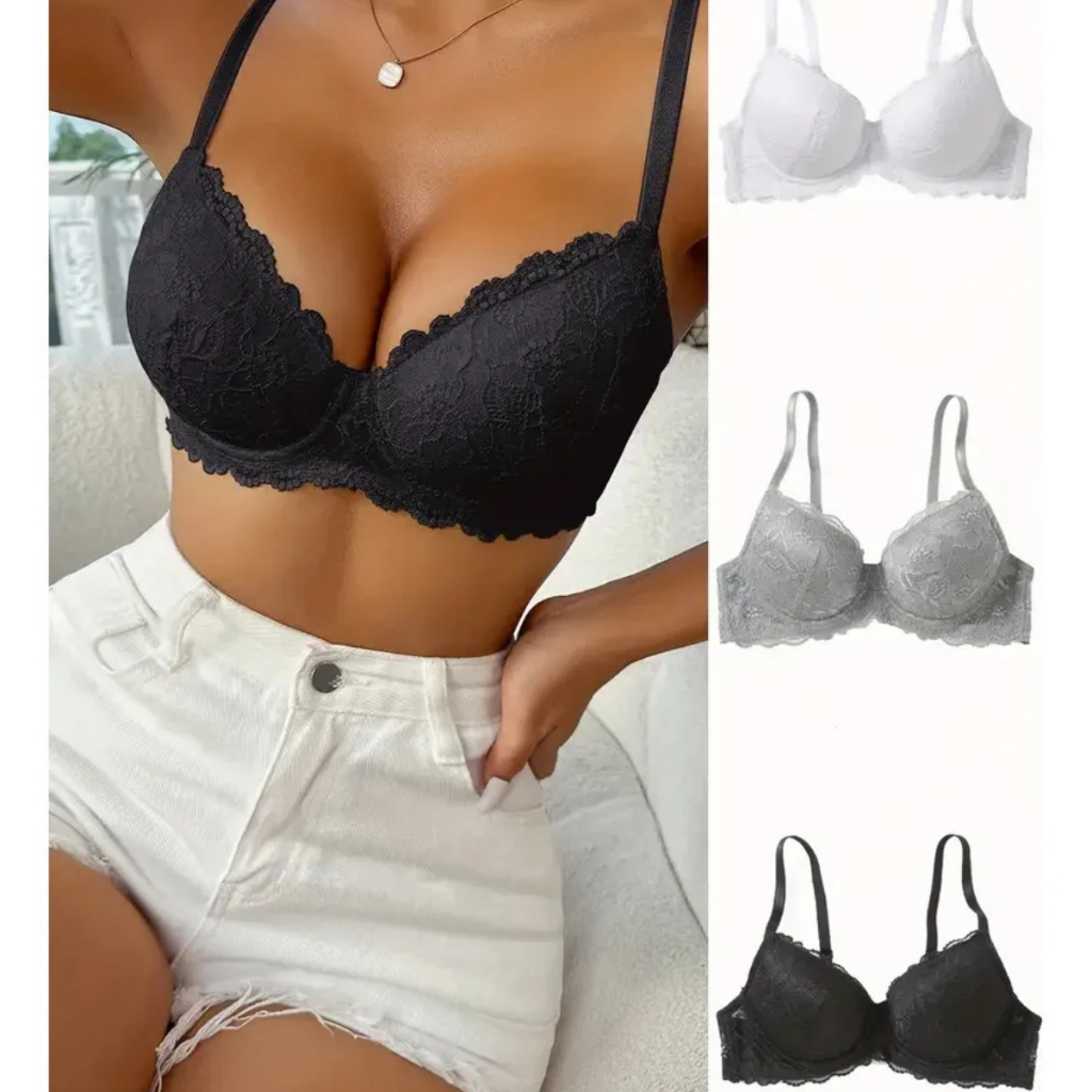 Kit C/3 Sutiã Básico Rendado Reforçado Com Bojo Do P Ao Gg Direto da Fábrica soutien sutian sutia