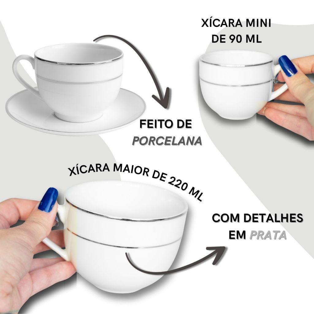 Aparelho de Jantar Porcelana 42 Peças Majesty Silver Jogo Jantar Mesa Posta Hermitage