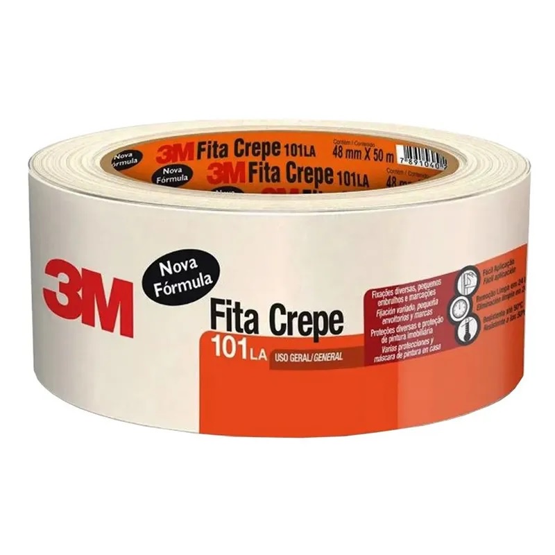 Fita Crepe Uso Geral Branca 18X50 / 24x50 / 48X50 3M Fita Para Pintura Fita De Pintura Fina Media Grossa