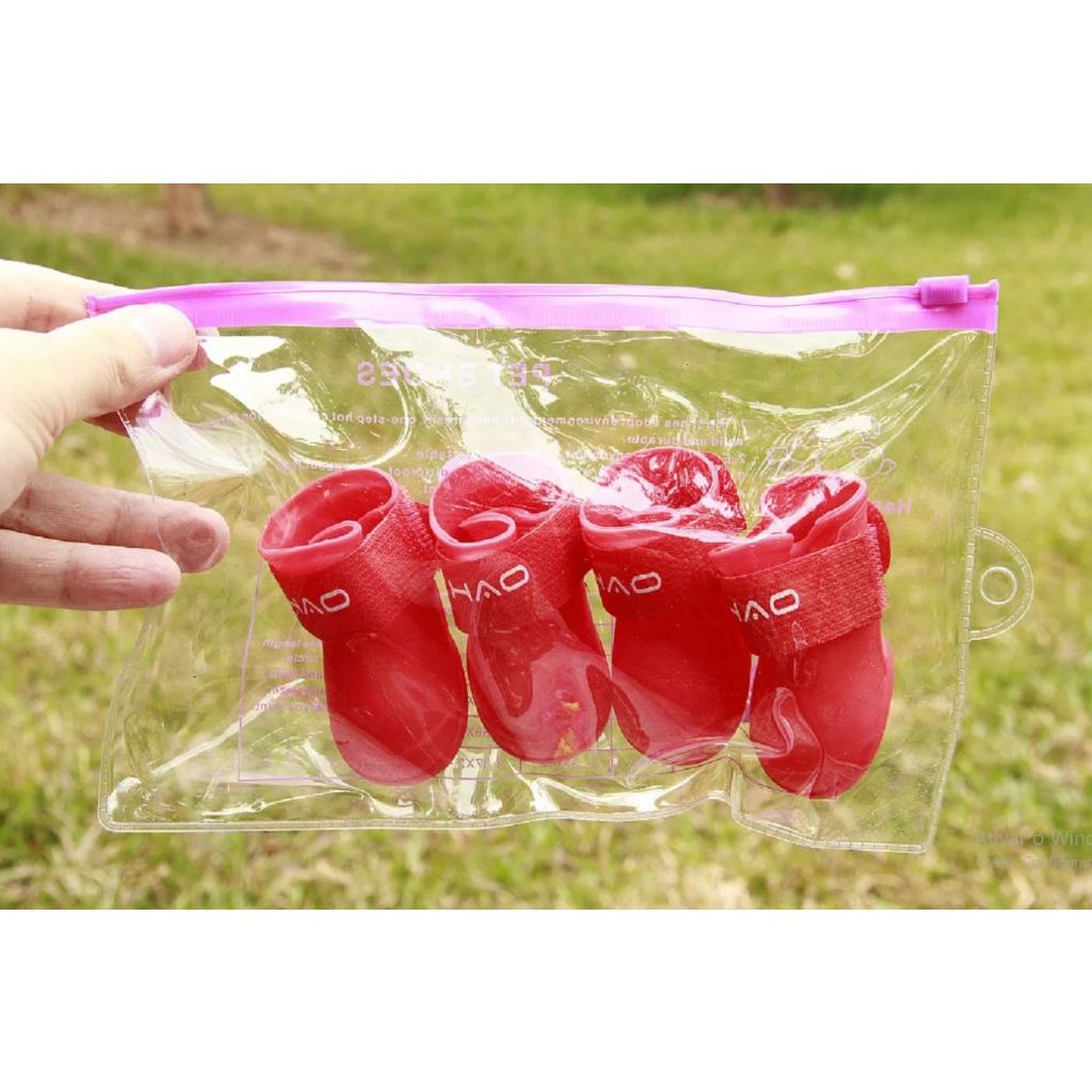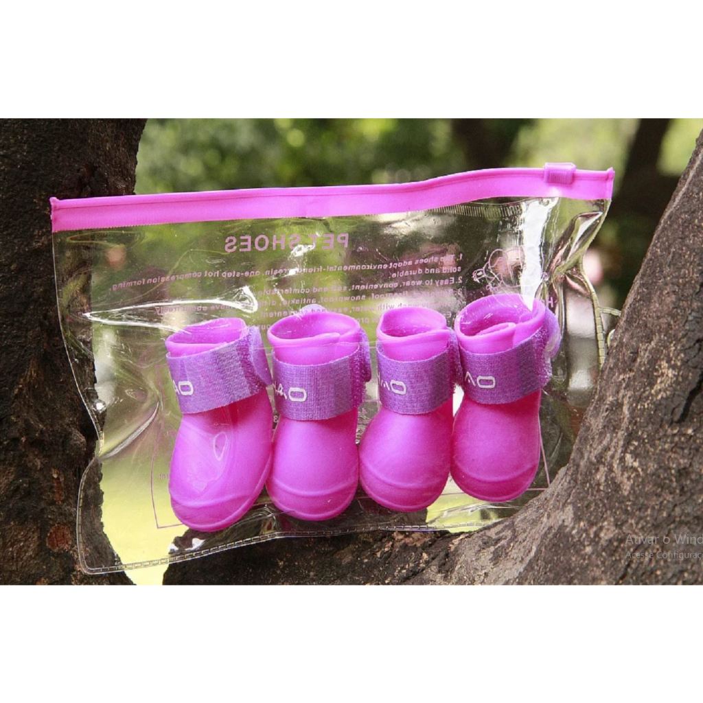 Kit 4 Sapato para Cachorro Gato Pet Bota de Borracha Antiderrapante Botinha a Prova D'água Protetor de Pata LR-0201