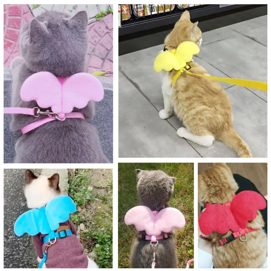 Coleira Peitoral Com Guia e Asas de Anjo Ajustável Para Gatos