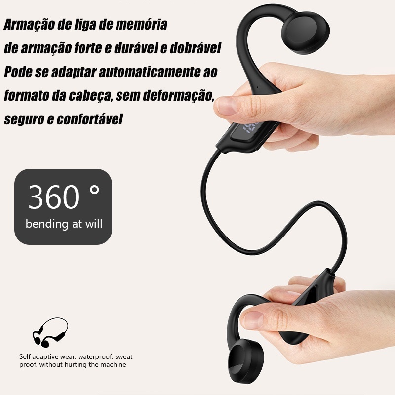 Bone Condução Fones De Ouvido Esporte LED Tela Sem Fio Bluetooth 5.1 Suporte De Fone MP3 Para Xiaomi Android IOS