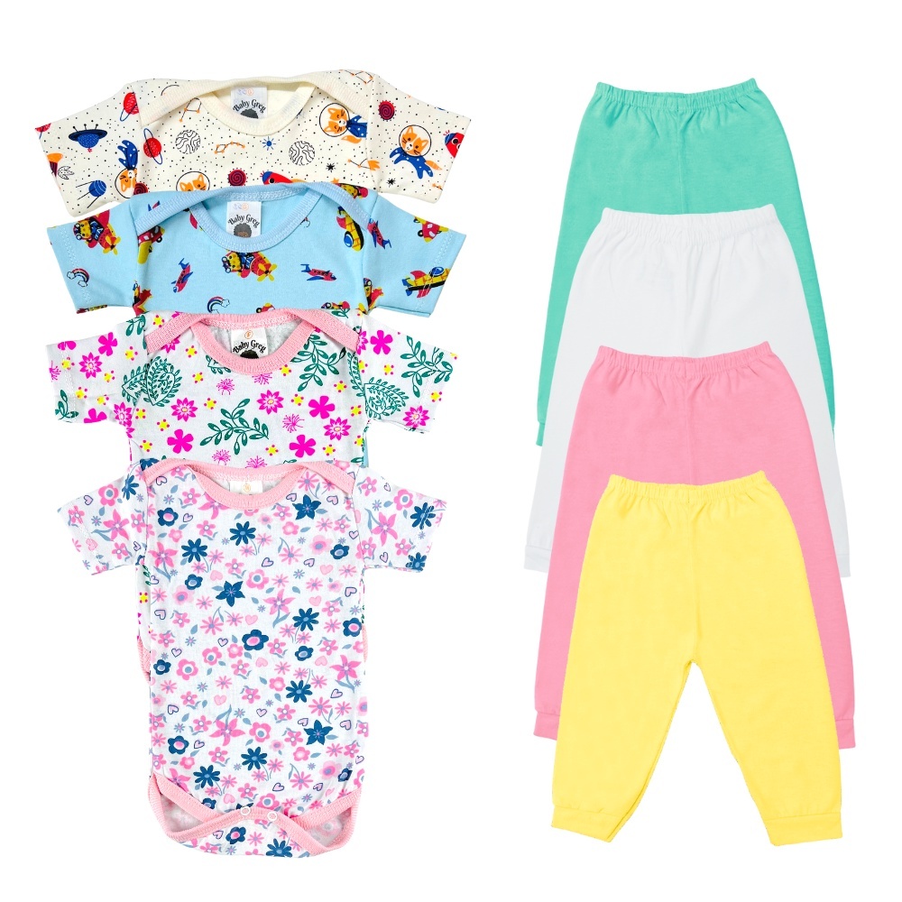 Kit bebe 4 peças - Body bebe e Calça Mijão (Rn P M e G)