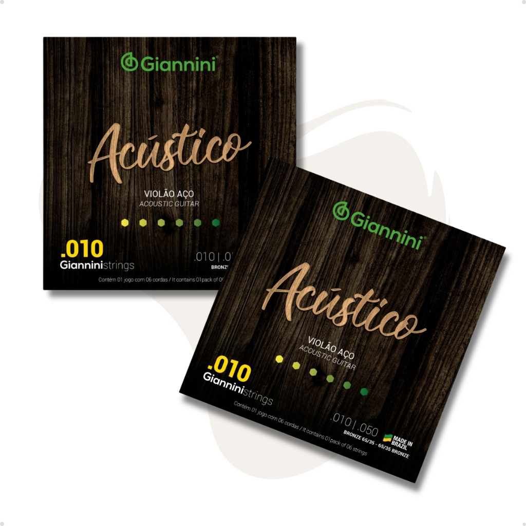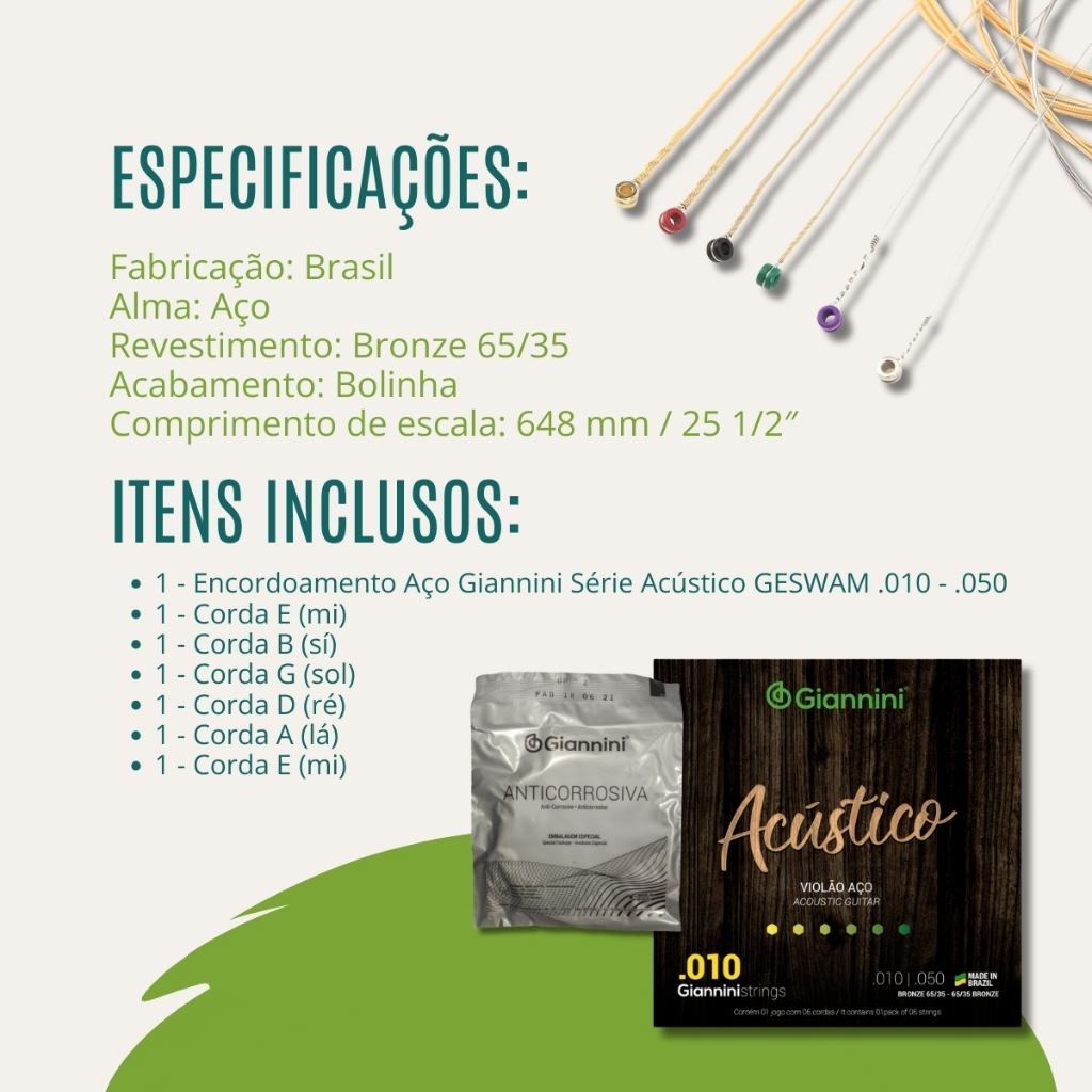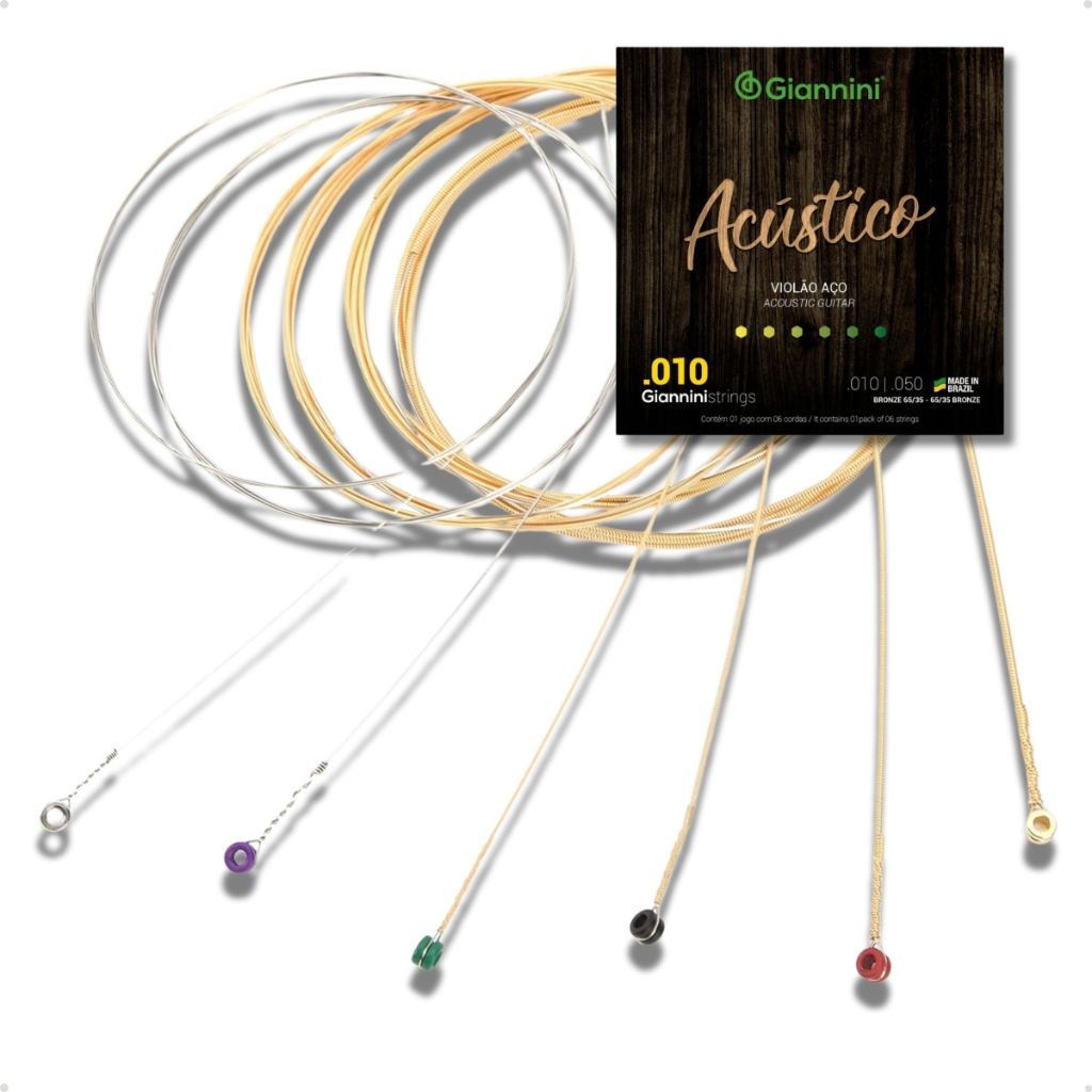 Encordoamento Giannini Com Bolinha Geswam Encordoamento Violão Aço 010 Corda de Violão de Aço Bronze