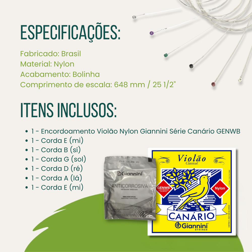 Encordoamento Giannini Com Bolinha Canário Genwb Encordoamento Violão Nylon Corda de Violão de Nylon