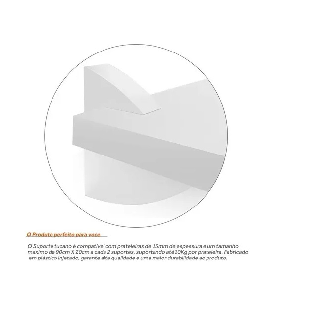kit 06 Suportes Bico de Tucano para Prateleiras MDF 15mm de espessura cor Branco