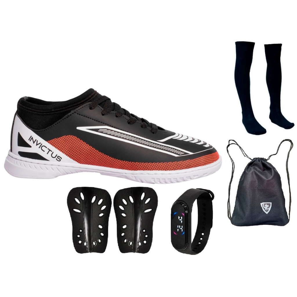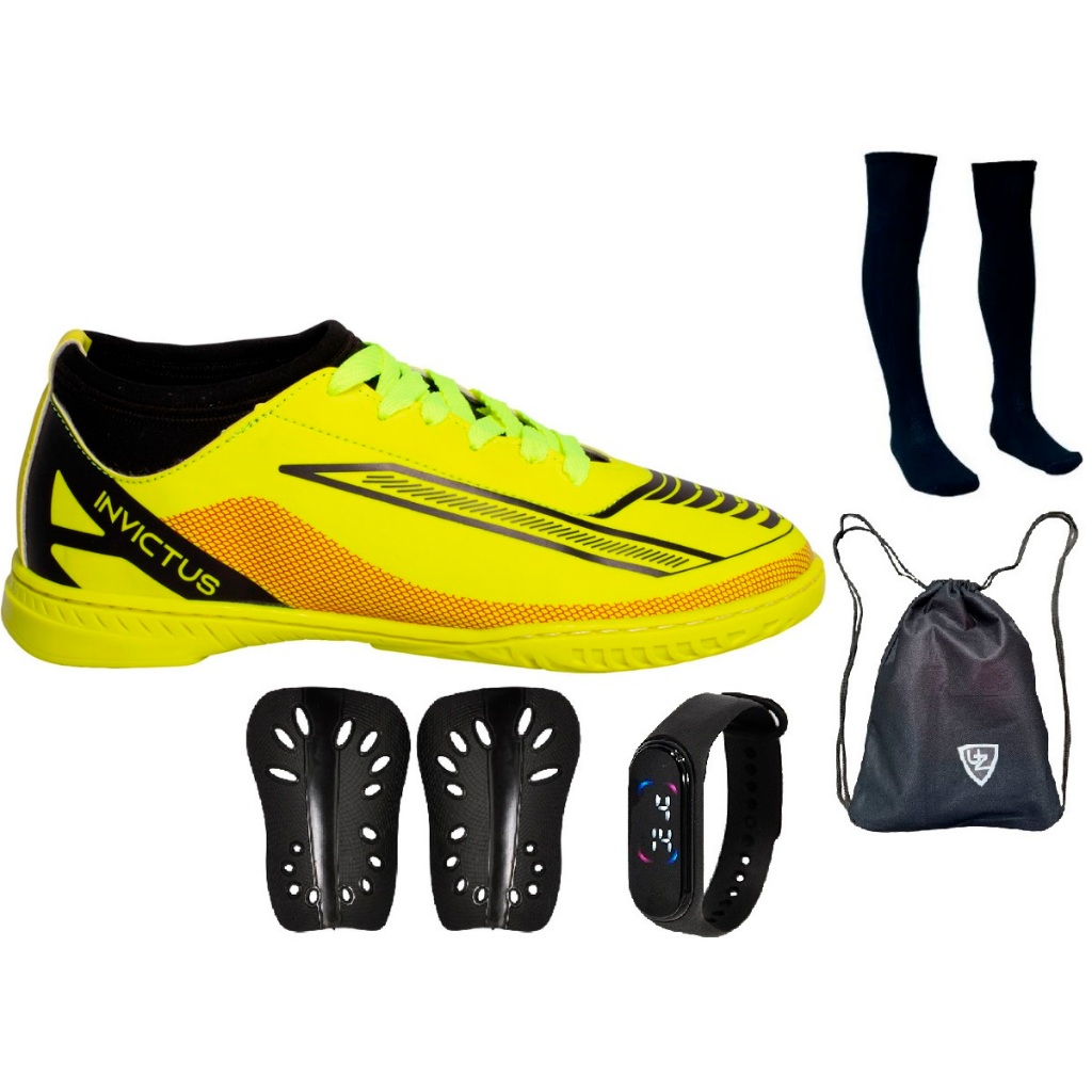 Chuteira Futsal Invictus Quadra Nova Original Uzze Meião Mochila Relógio Caneleira