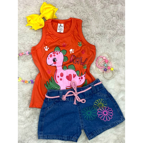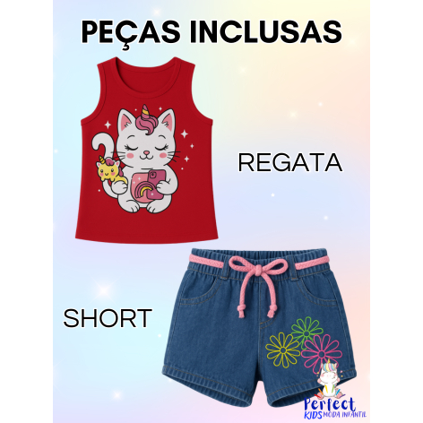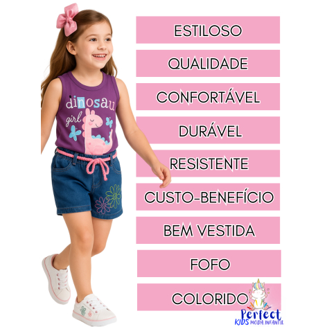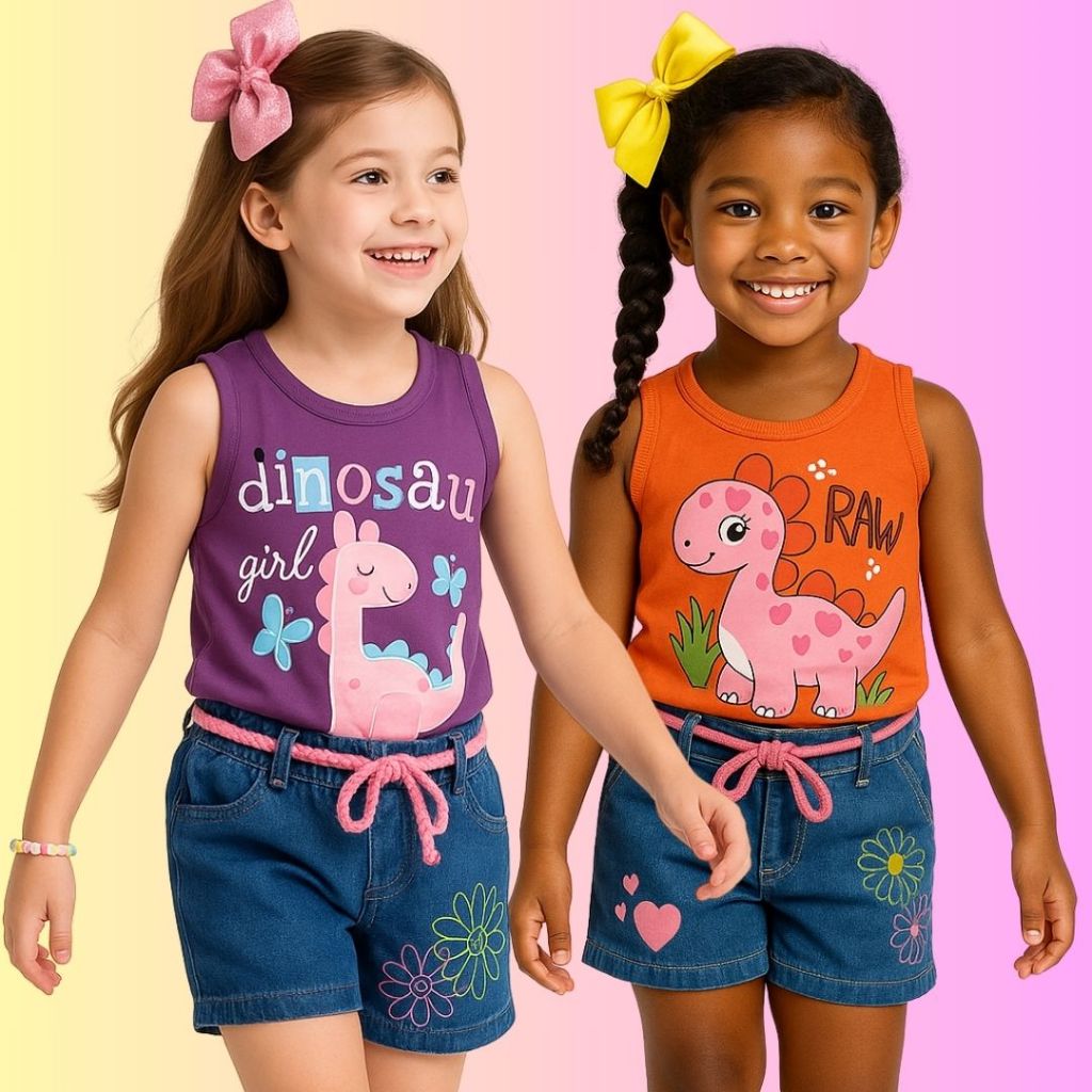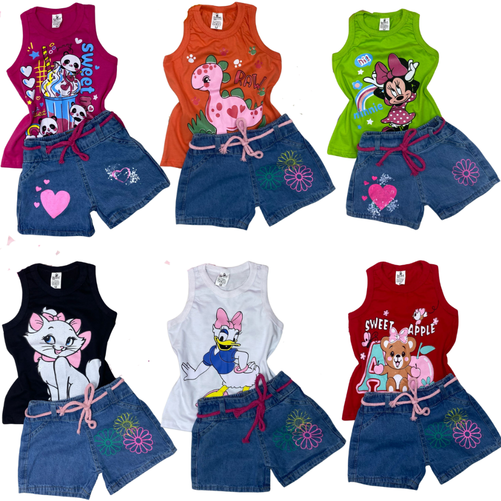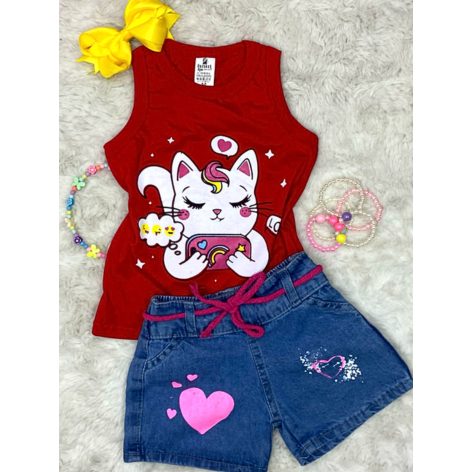 Conjunto Menina Infantil Blusa Regata e Shorts Jeans