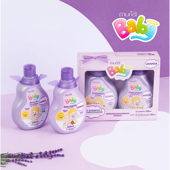 kit Shampoo + Cond + sab Líquido + colônia + Lo Hidratante + Óleo Inf Muriel Baby Lavanda 100ml