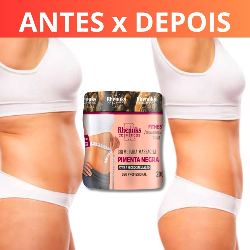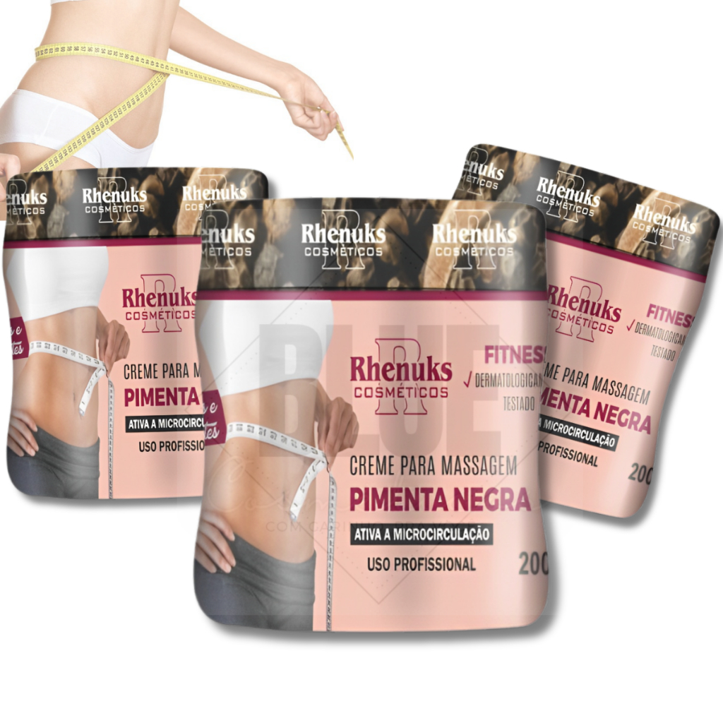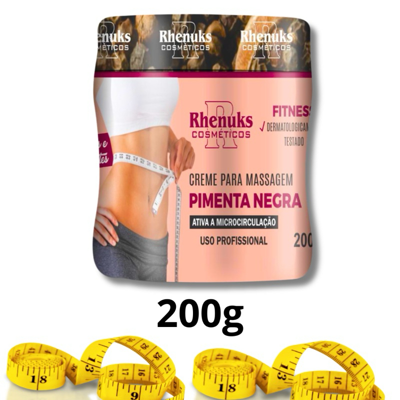 Kit 4 Creme PIMENTA NEGRA Redutor de Medidas 200g Rhenuks Cosméticos