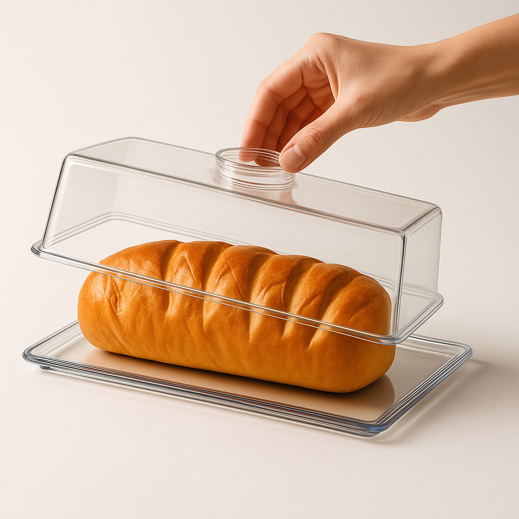 Porta Pão Cristal com Tampa Articulável – Organize sua Cozinha com Estilo e Praticidade