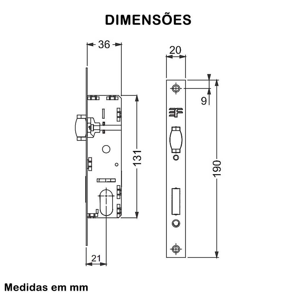 Fechadura Rolete P/ Porta Pivotante 522r Cilindro 50mm 3f