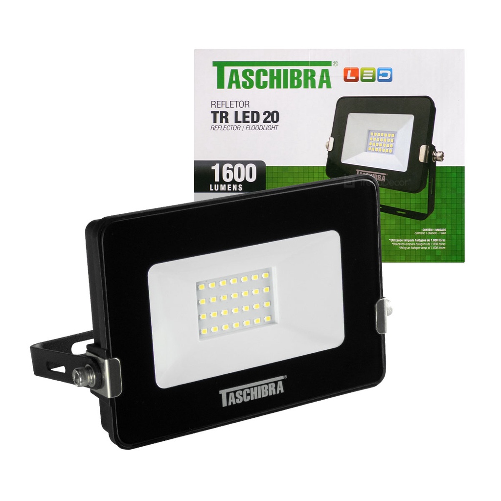 Refletor Taschibra TR LED 20W Monovolt 220V Preto Iluminação Forte para Áreas Externas