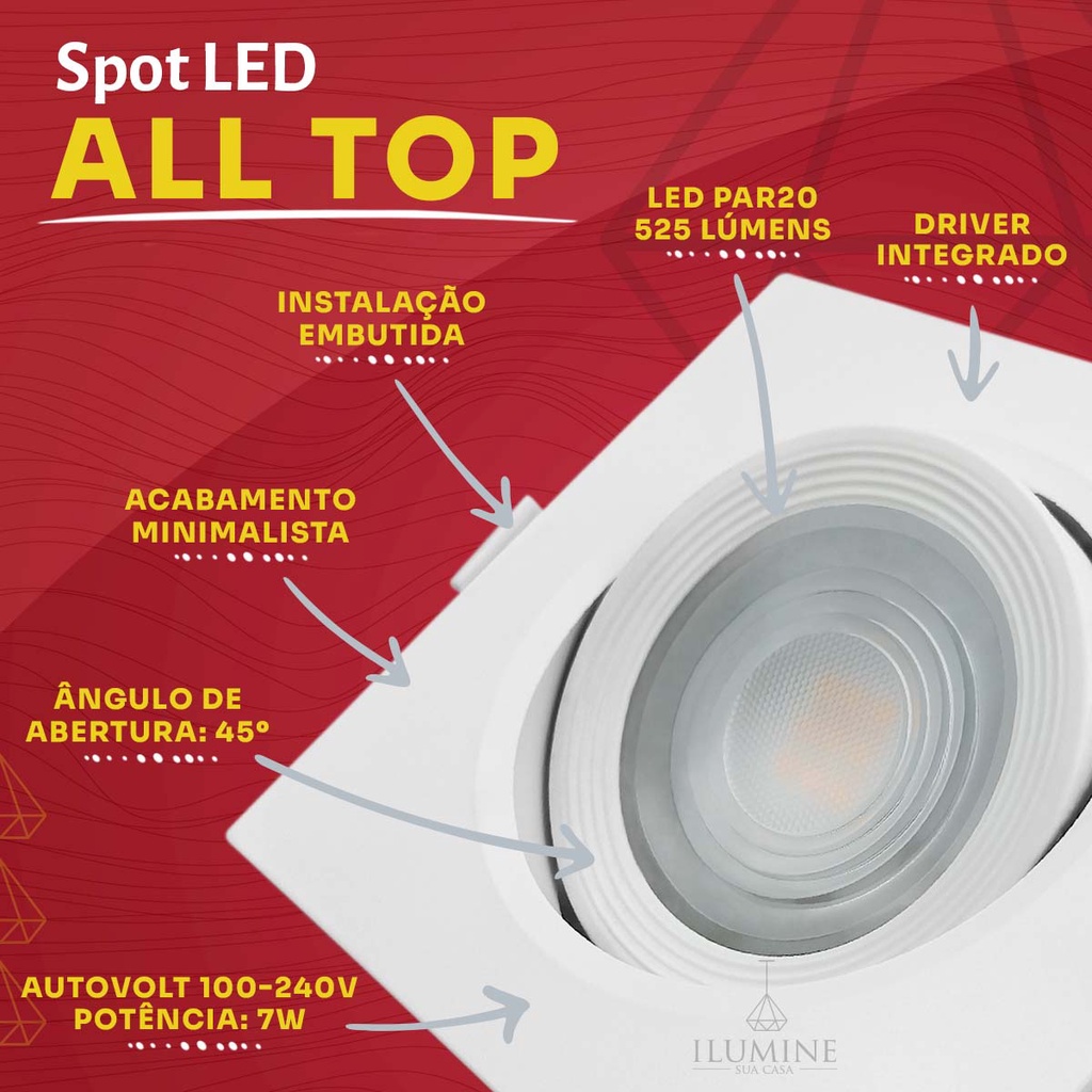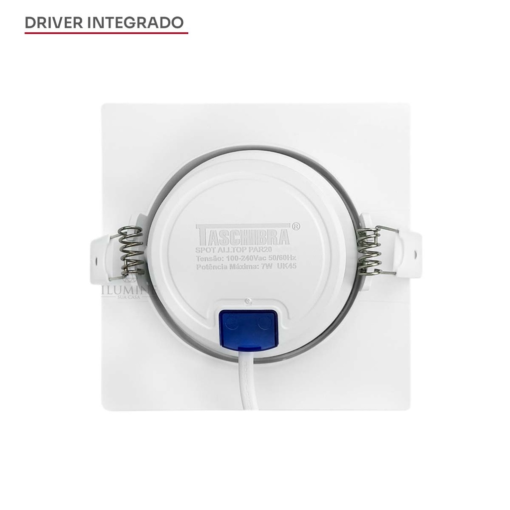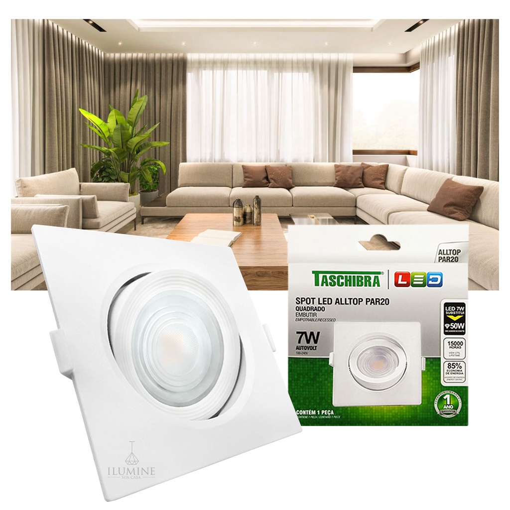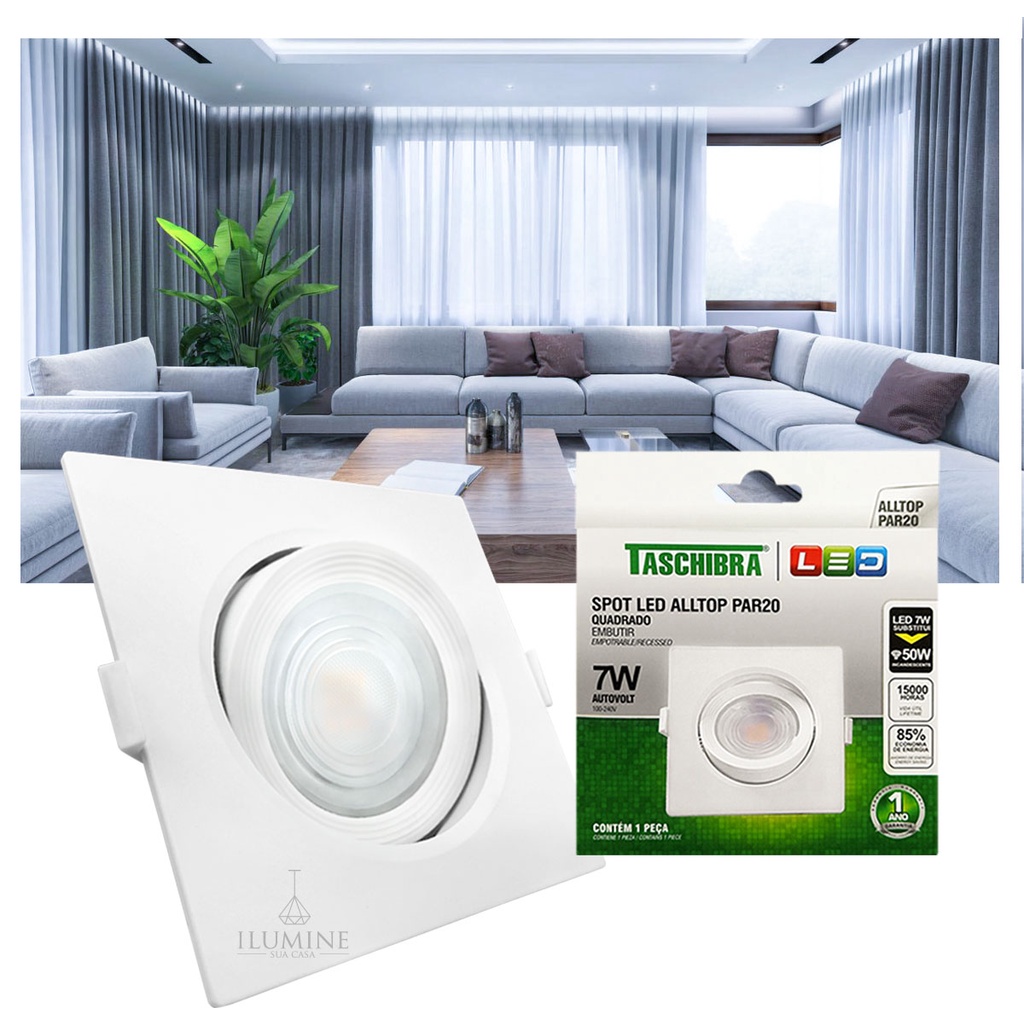 Spot LED Taschibra Alltop Quadrado Embutir PAR20 7W 45º Iluminação Eficiente e Direcionada