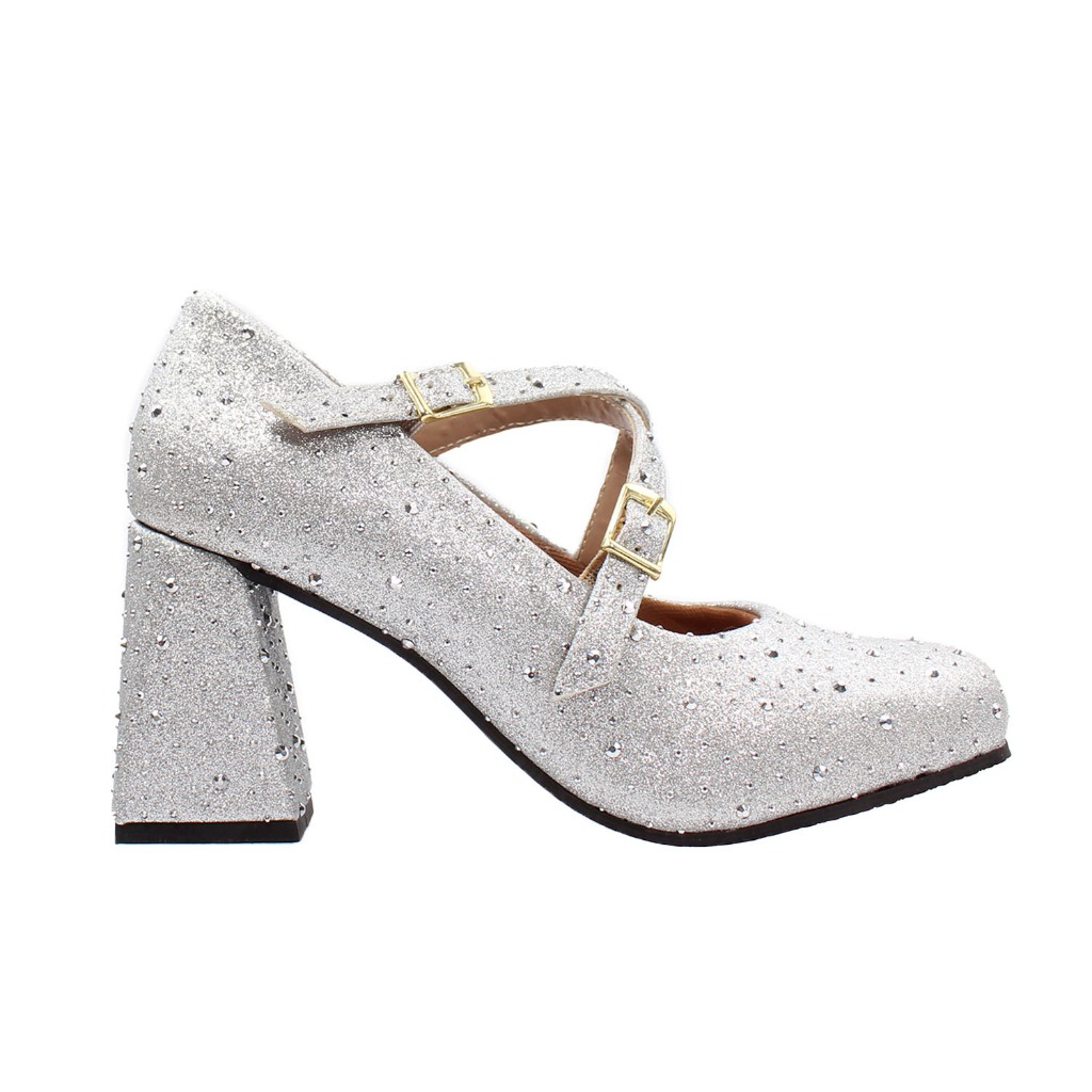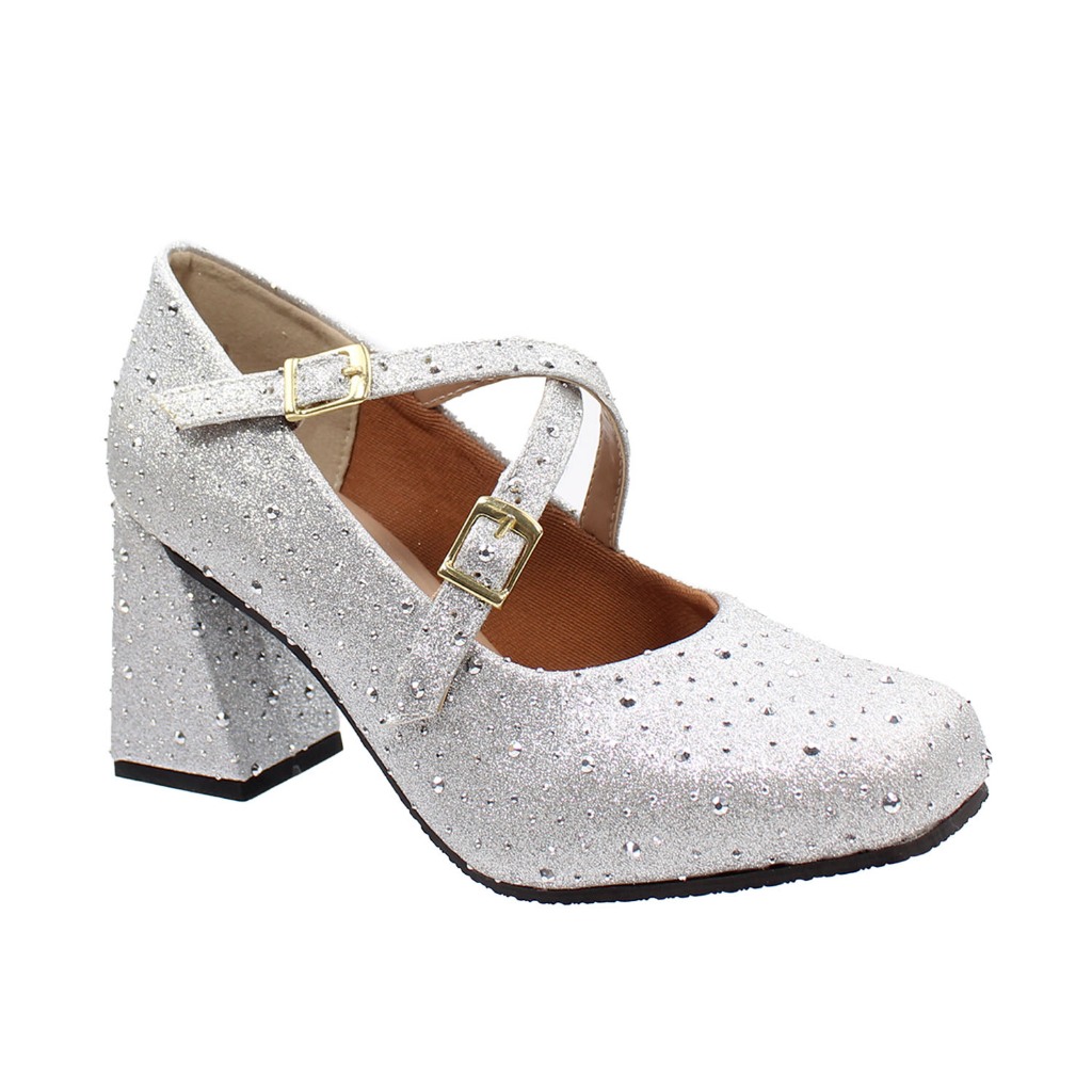 Scarpin Feminino Sapato Boneca Retrô Salto Bloco Grosso Bico Quadadro Confortável Promoção 1239