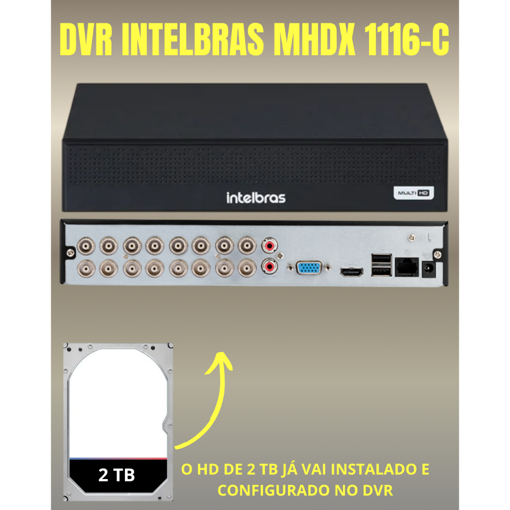 Kit Cftv 16 Cameras Full Hd VHL 1220 Dvr Intelbras 1116C 2TB