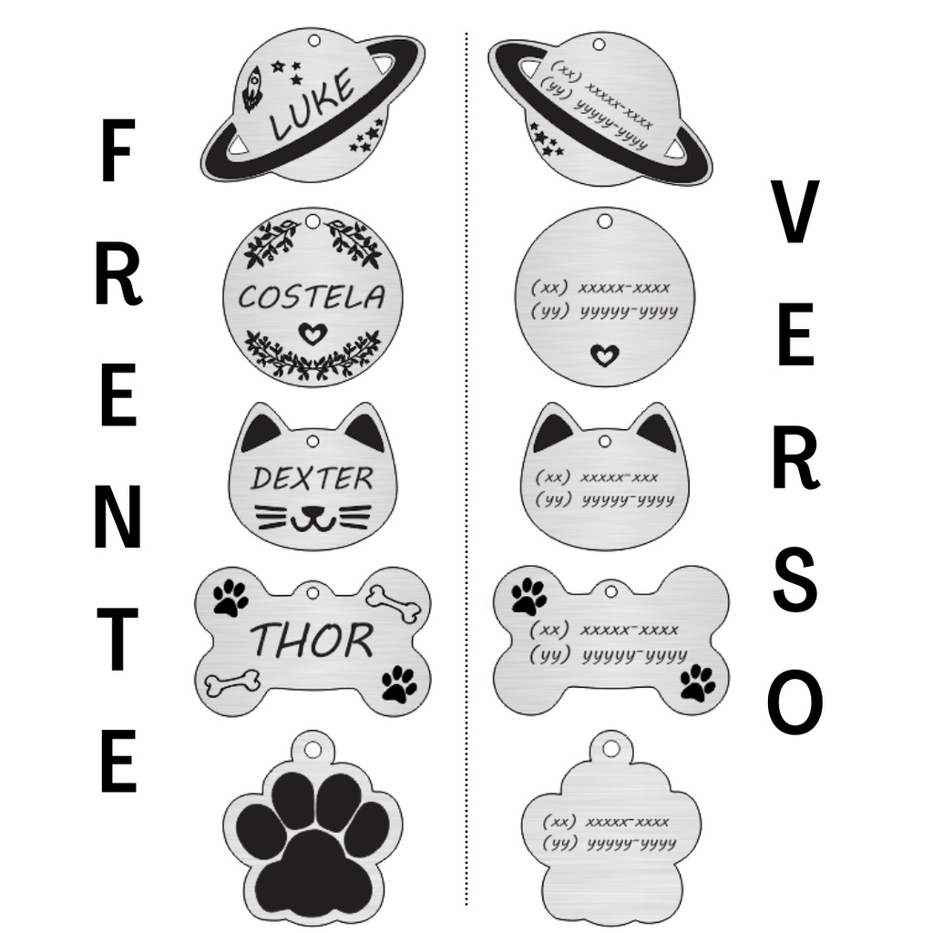 Pingente Pet com Nome Gravado Plaquinha de Identificação Cachorro Gato