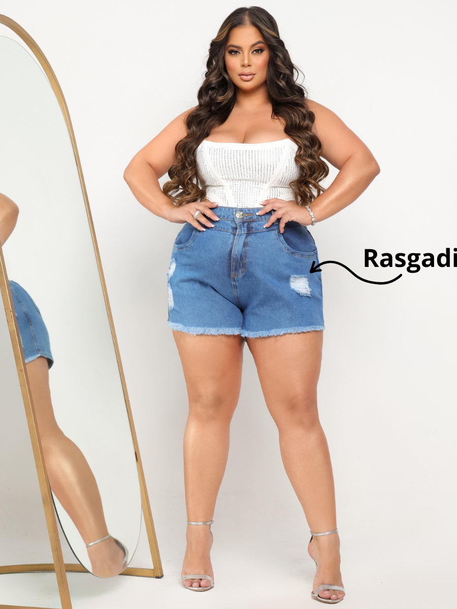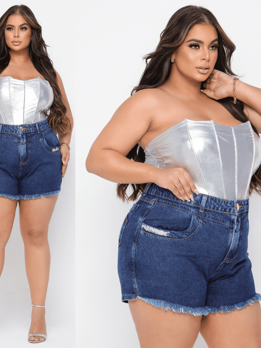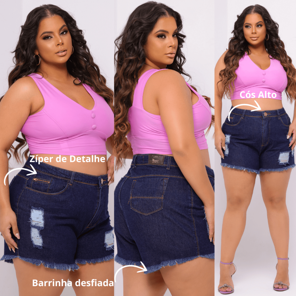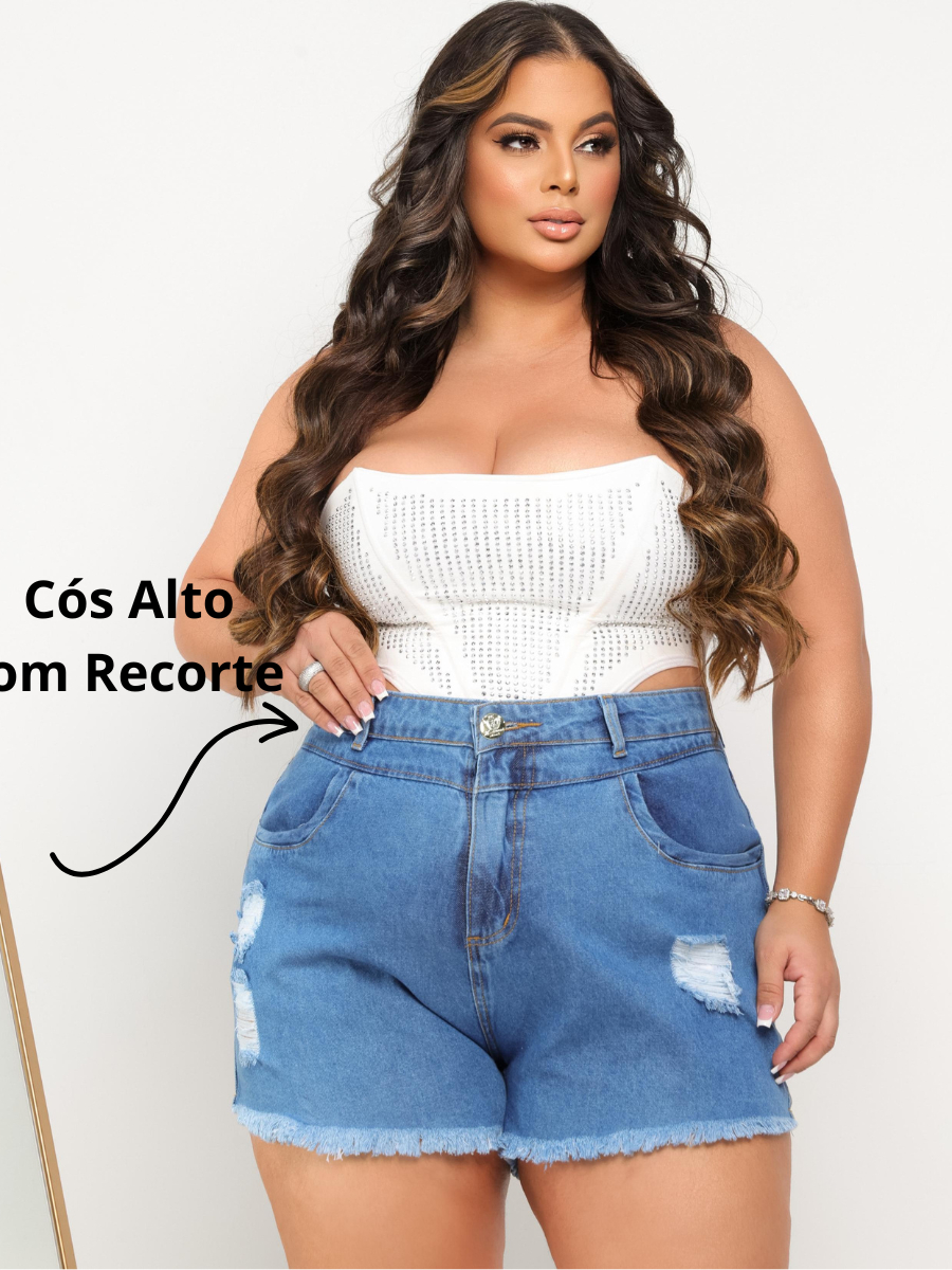 Short Jeans Plus Size Feminino Cós Alto 100% Algodao ( Não estica )