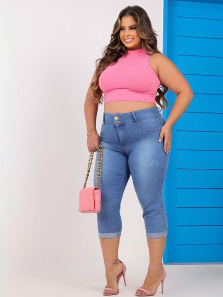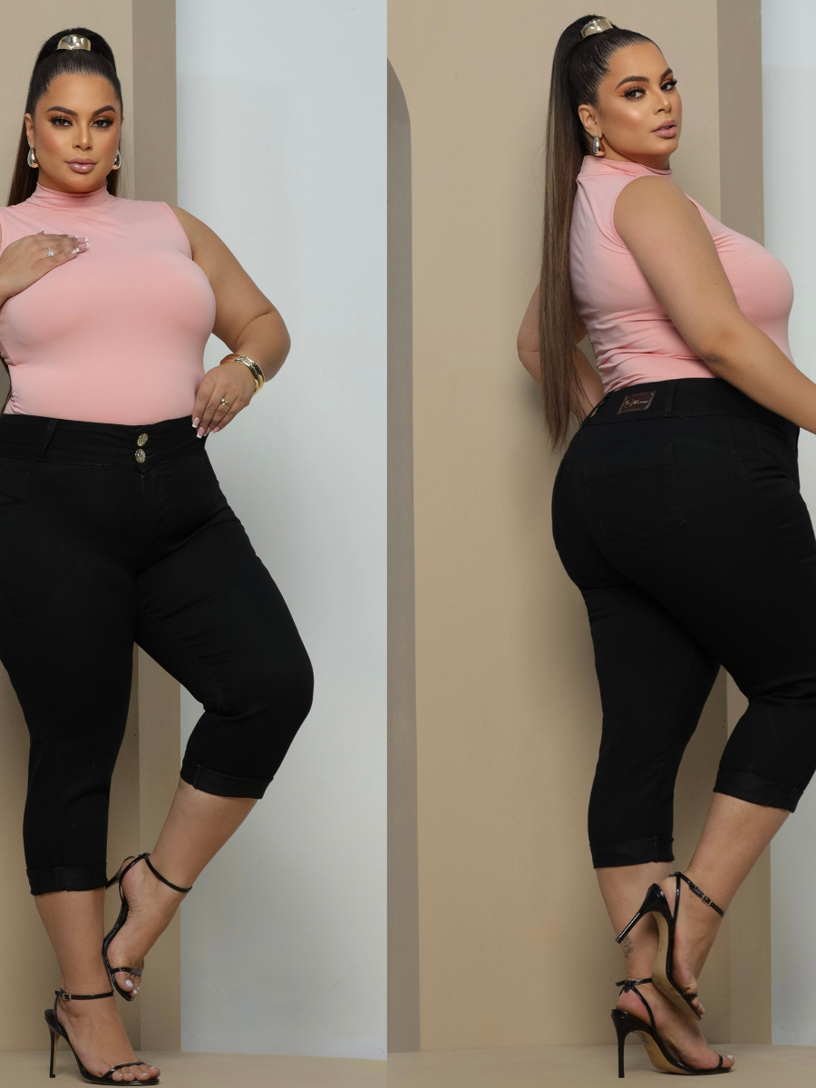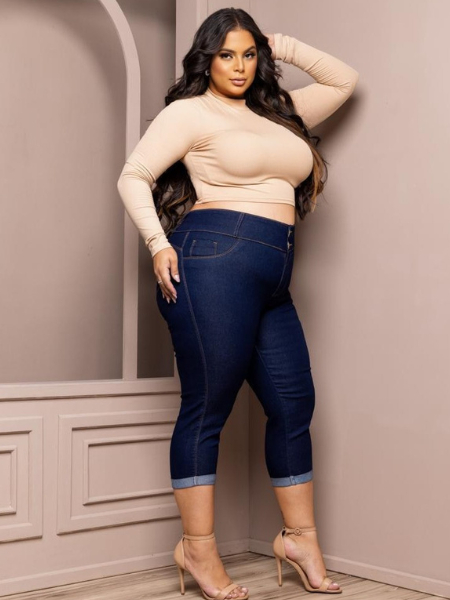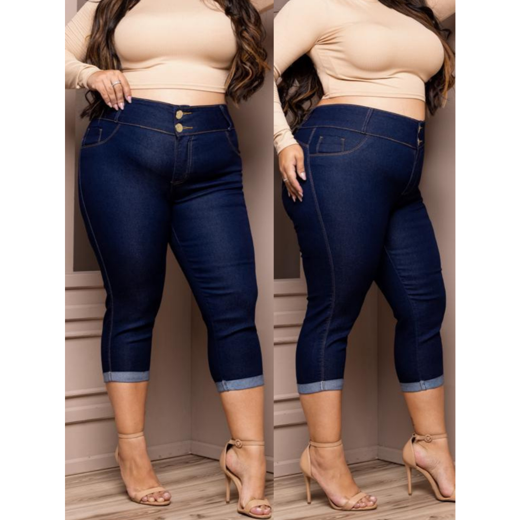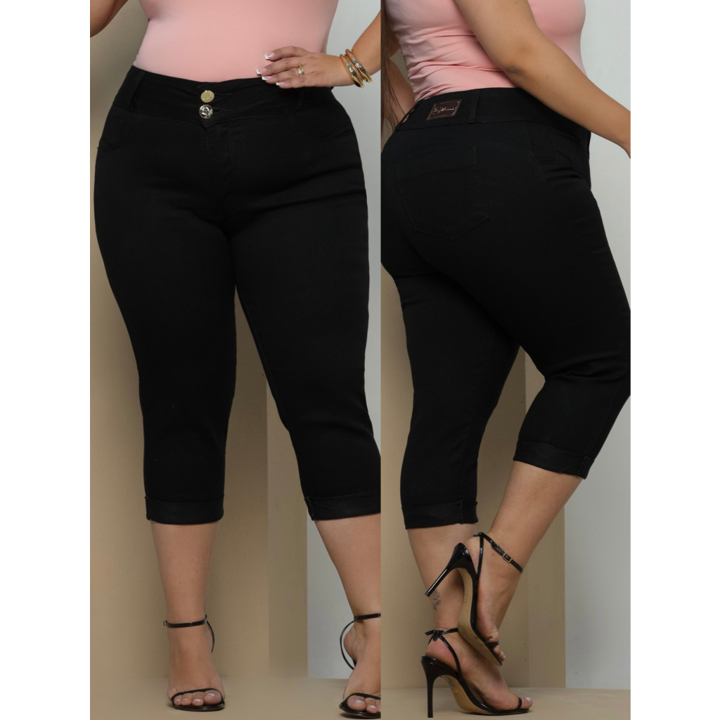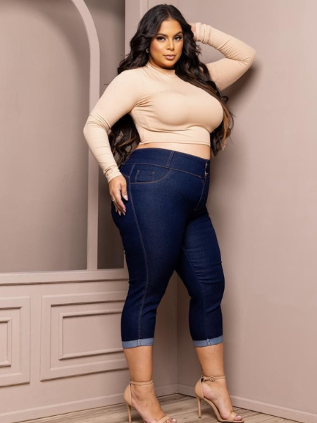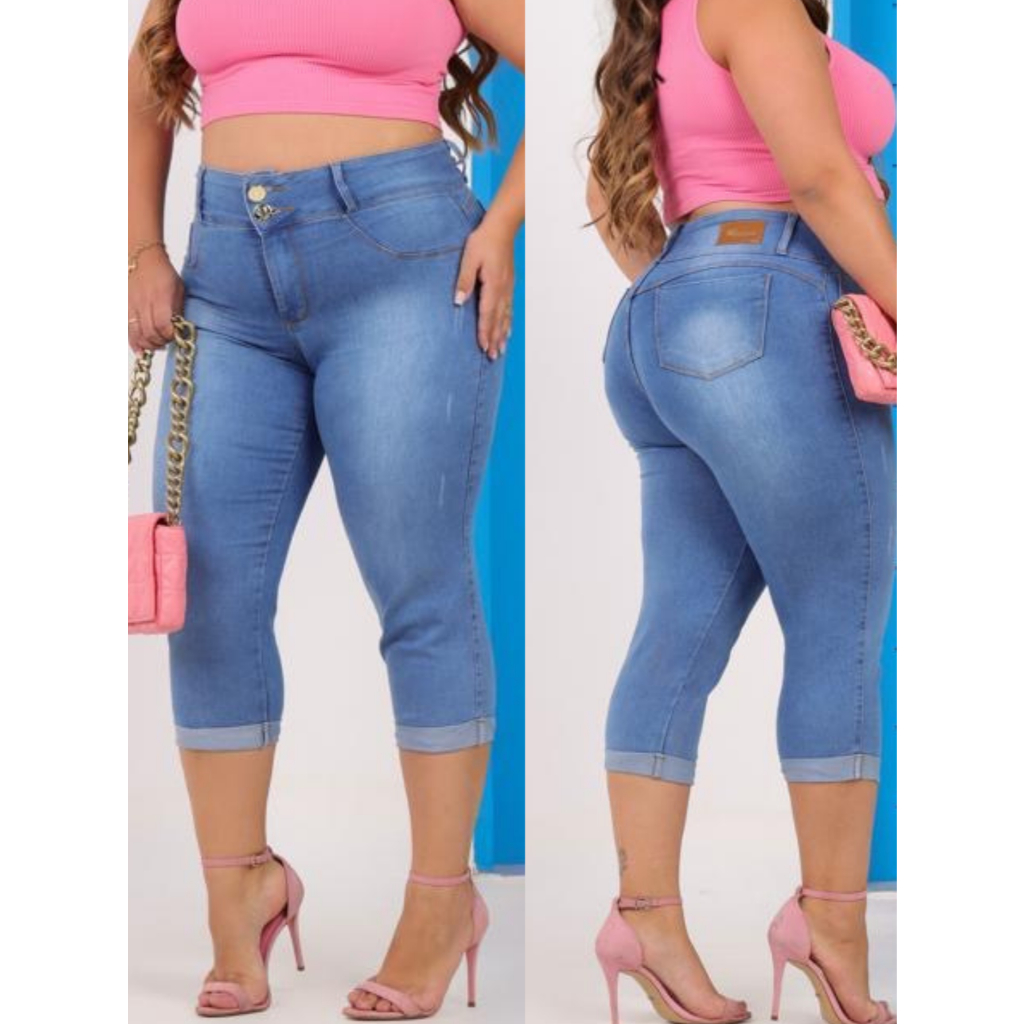 Calça Capri Jeans Plus Size Cintura Alta com Elastano ( Lycra) Tamanhos Grandes