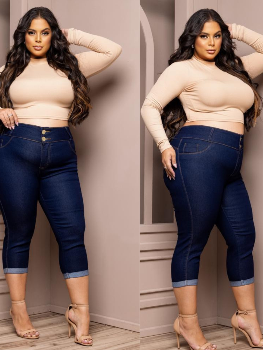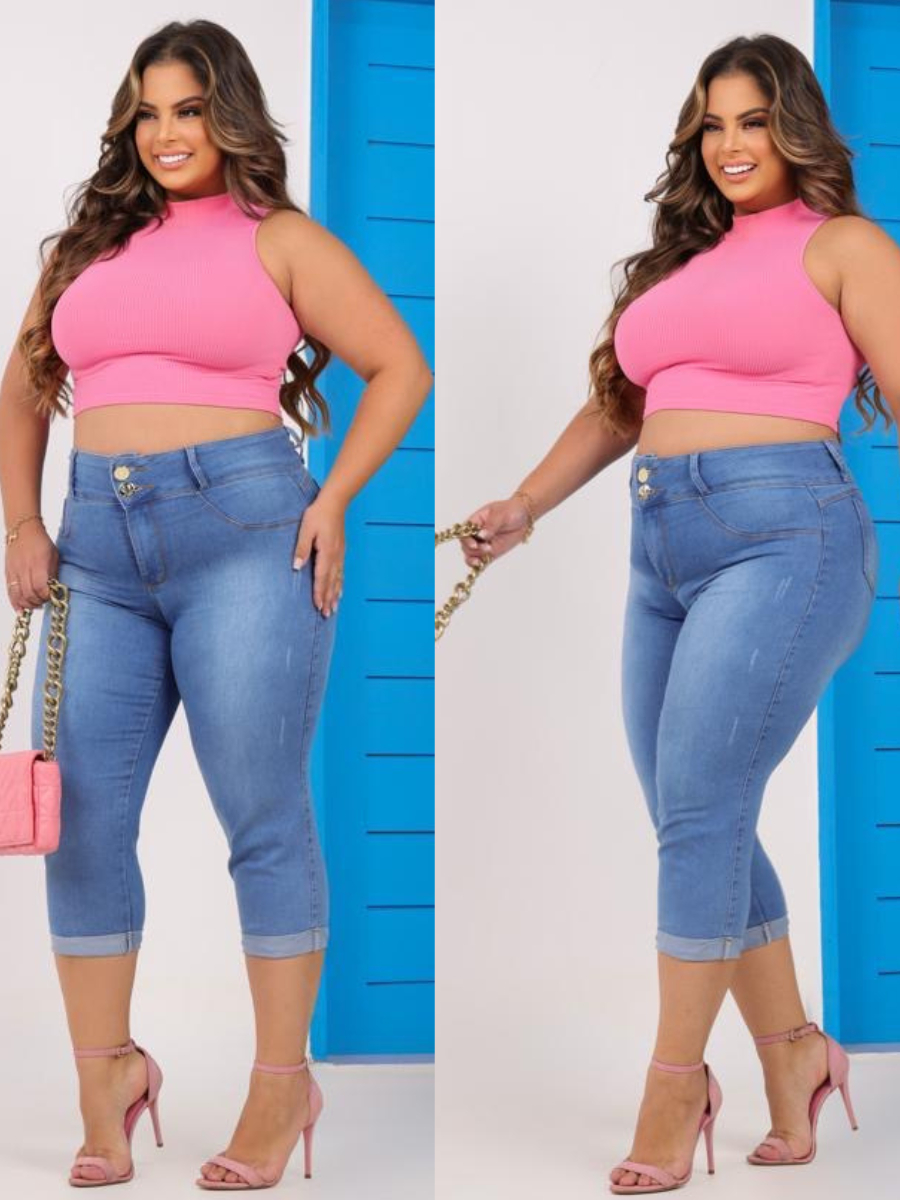 Calça Capri feminina Jeans Plus Size Cintura Alta com Elastano ( Lycra) Tamanhos Grandes