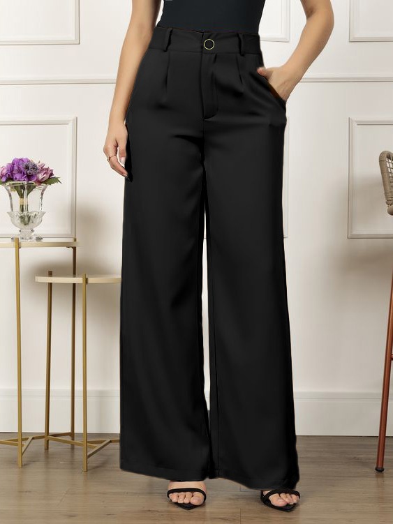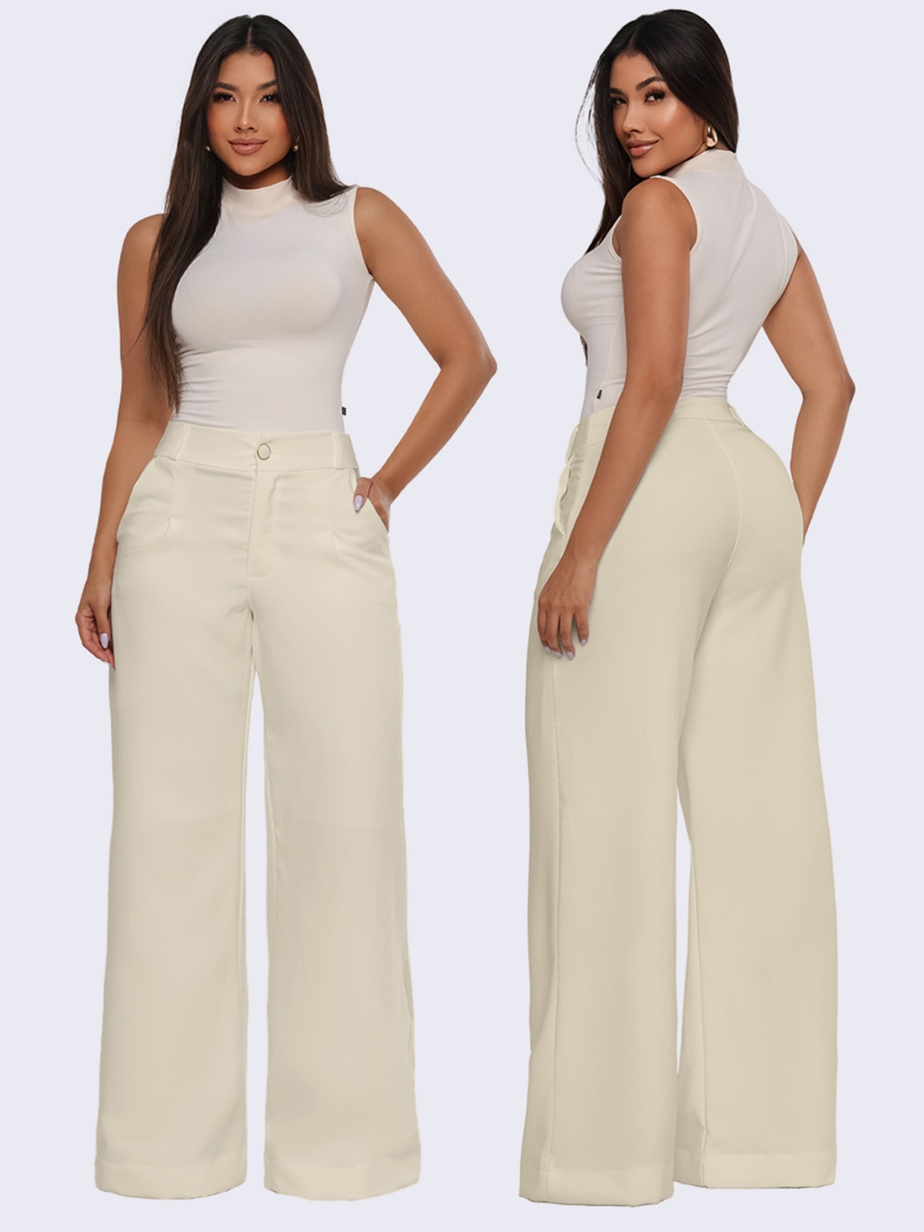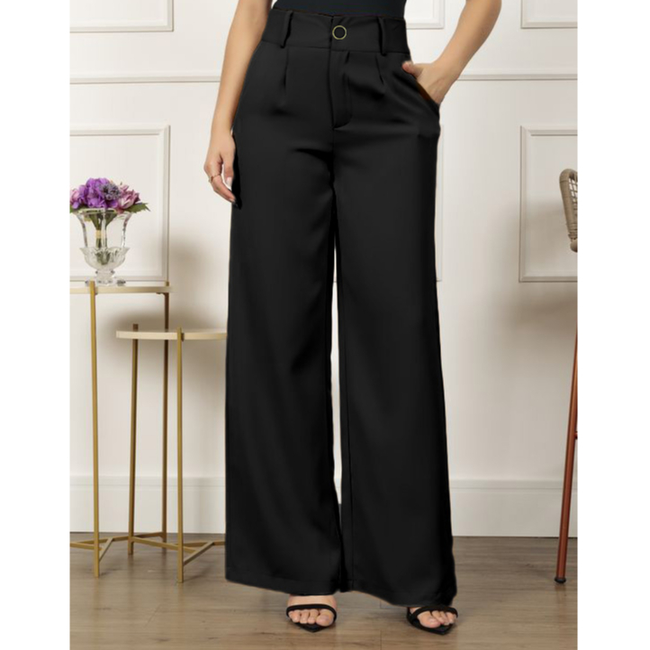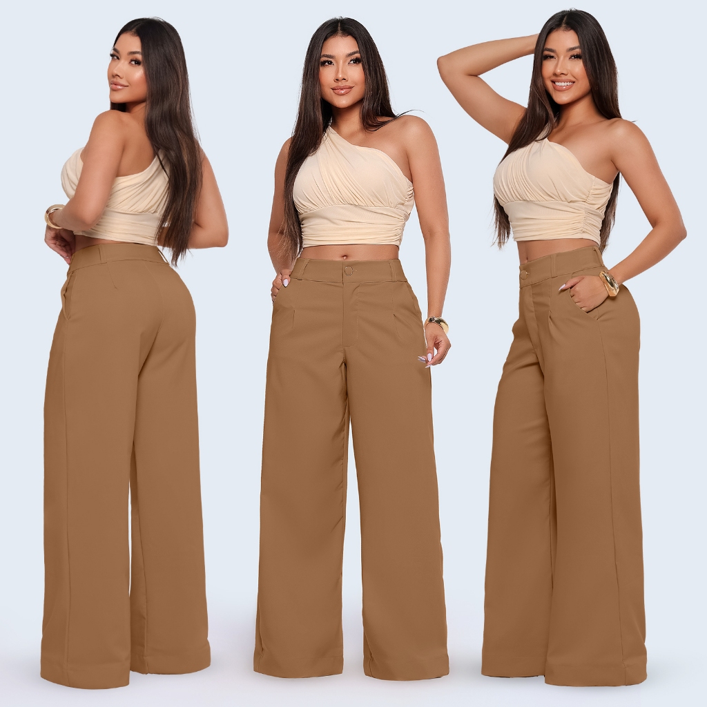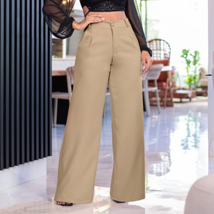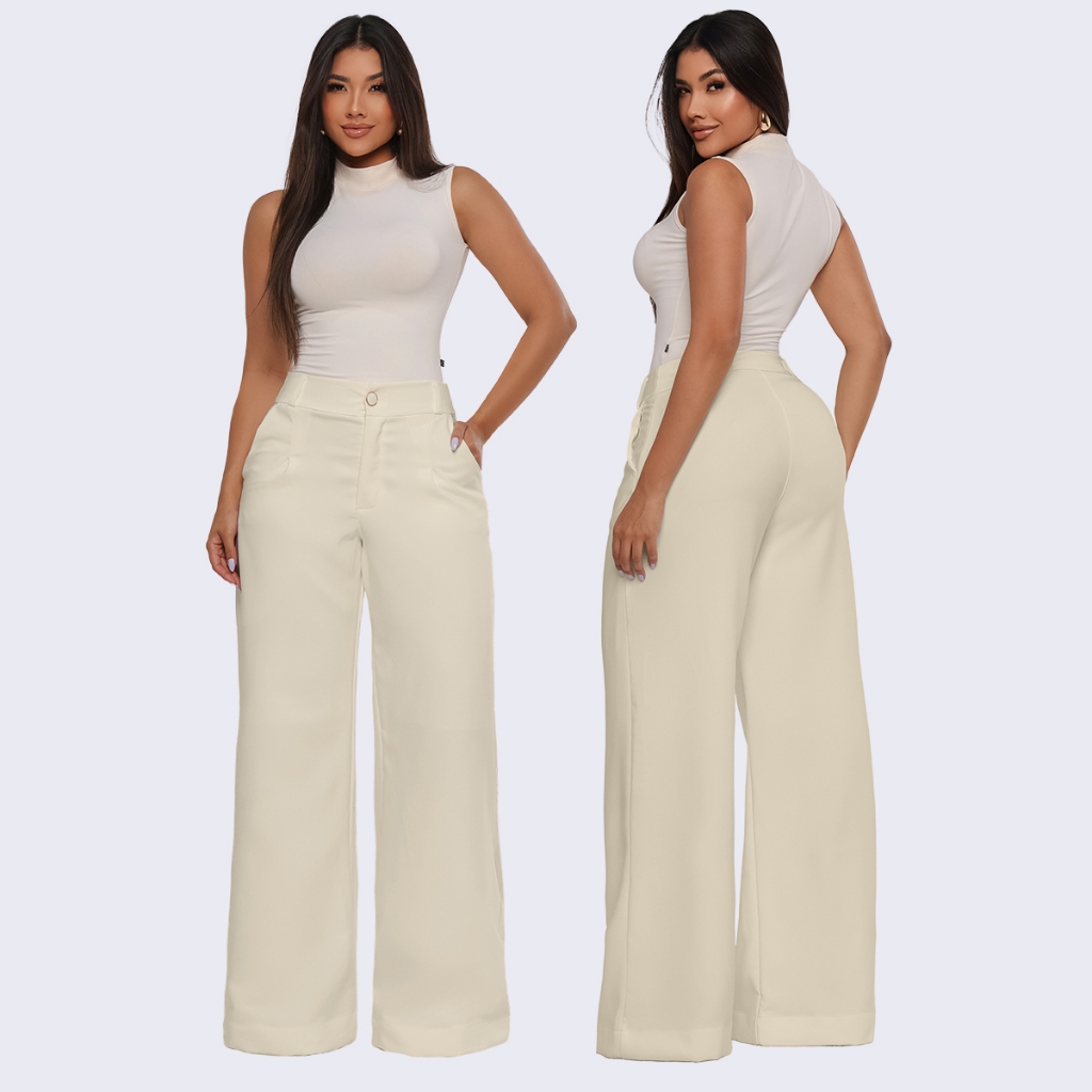 Calças Pantalona Feminina Social Tecido Alfaiataria Premium Forrada Botão Bolso Cintura Alta Plus