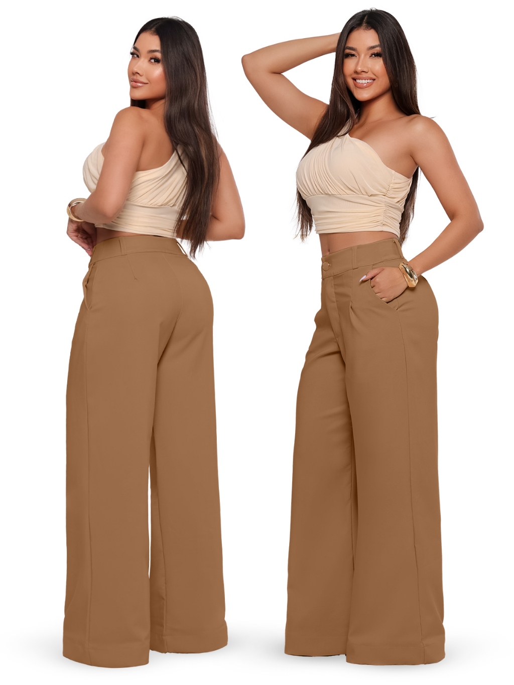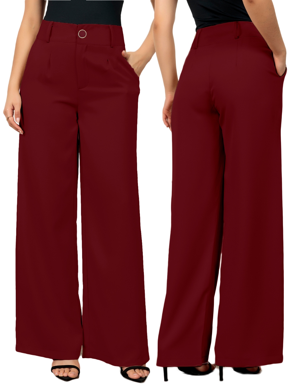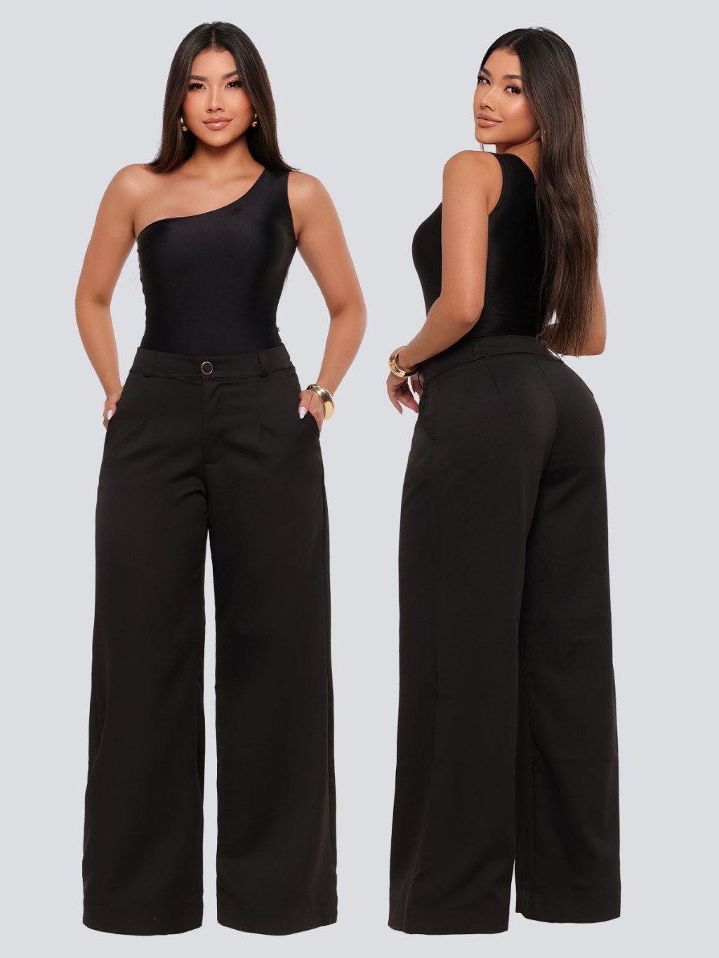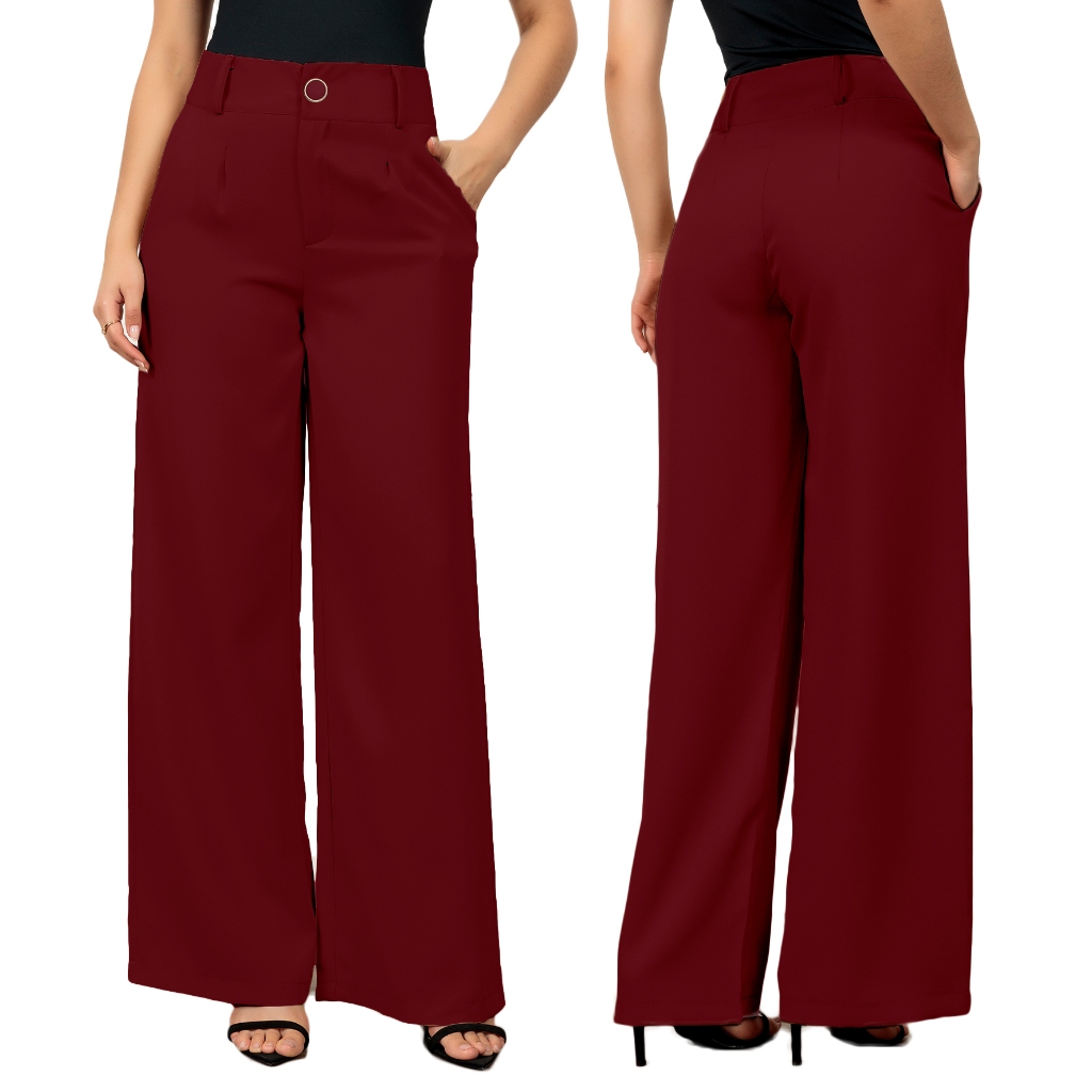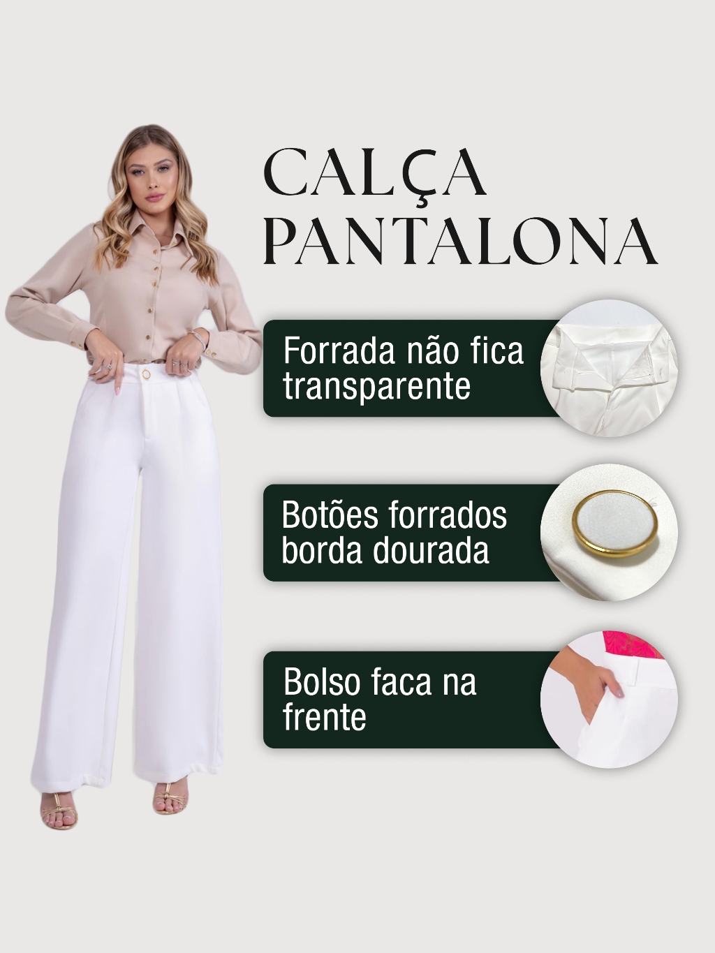 Calças Pantalona Feminina Social Tecido Alfaiataria Premium Forrada Botão Bolso Cintura Alta Plus