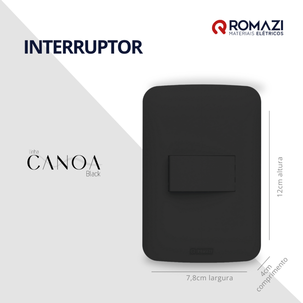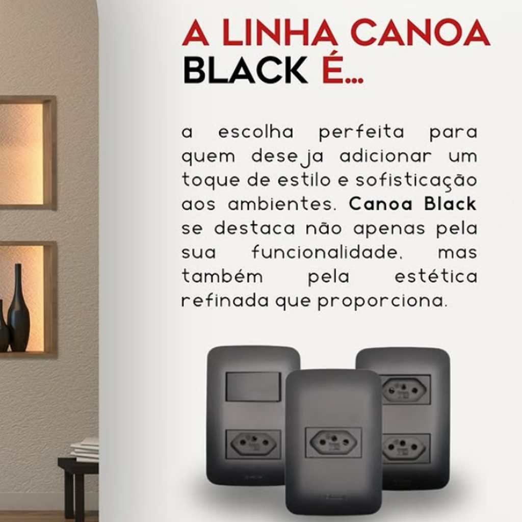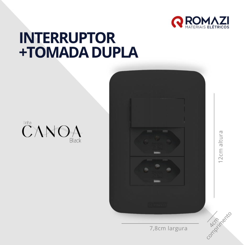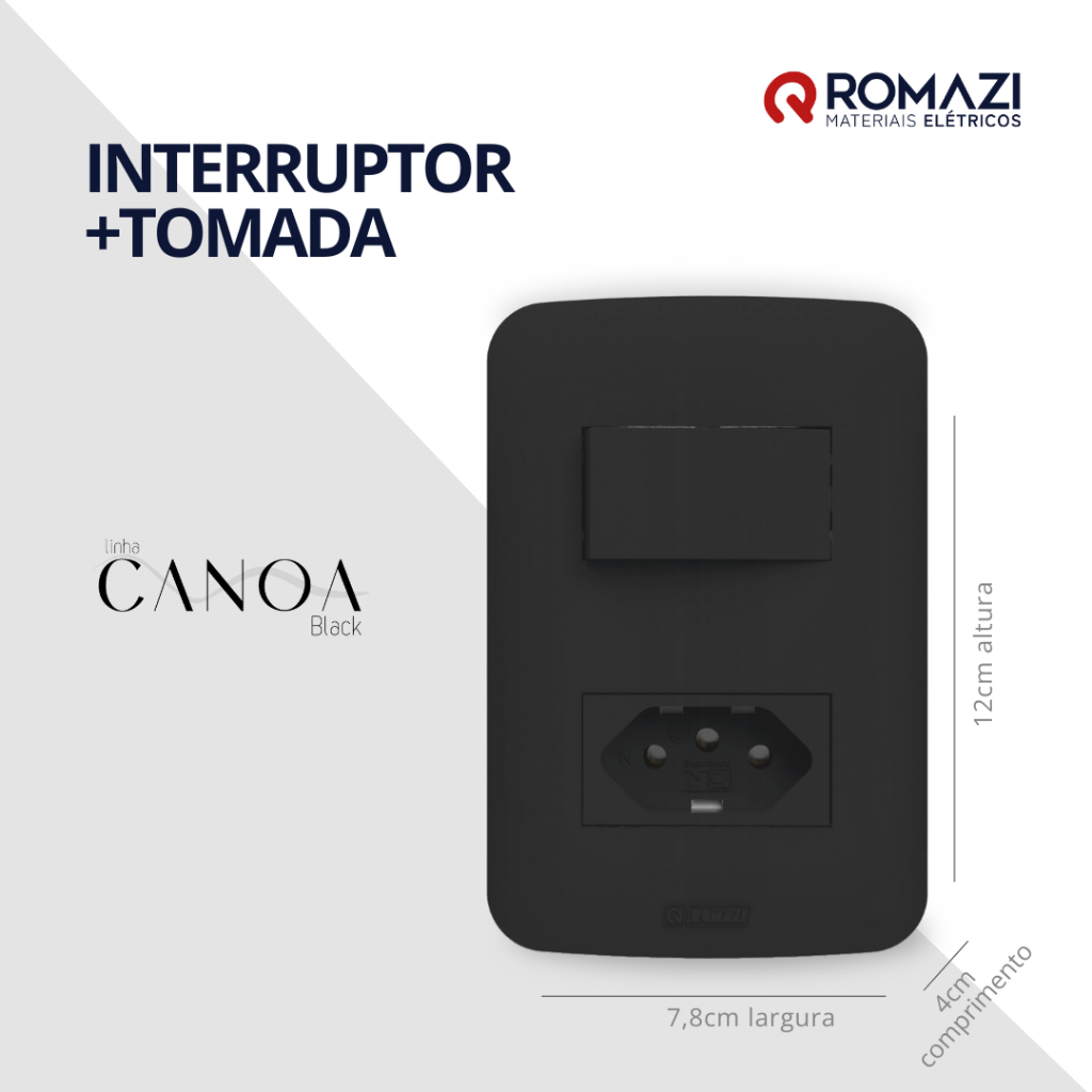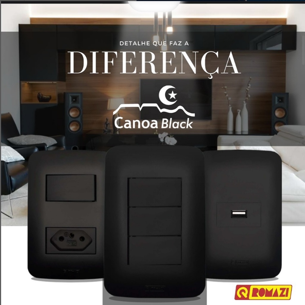 INTERRUPTORES E TOMADAS CANOA BLACK - ROMAZI