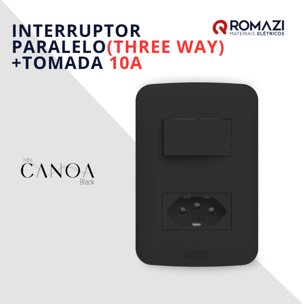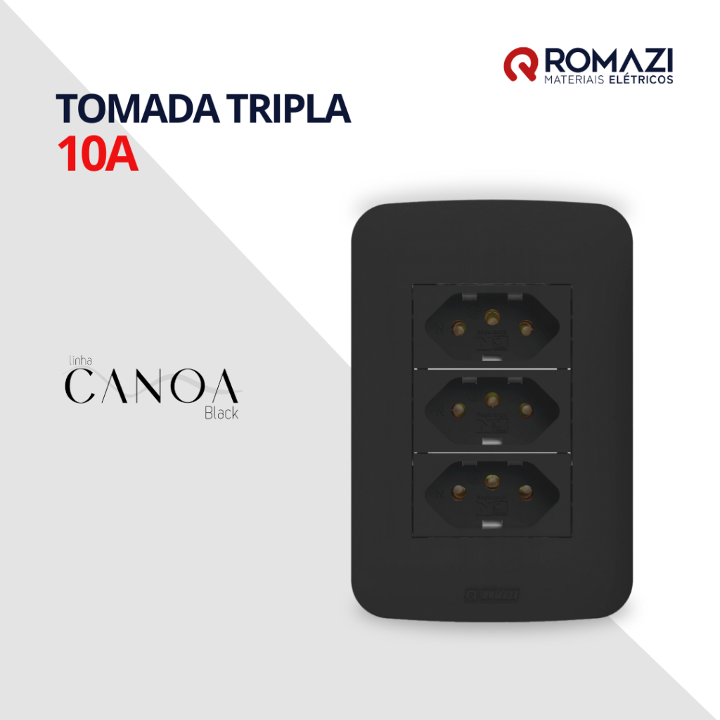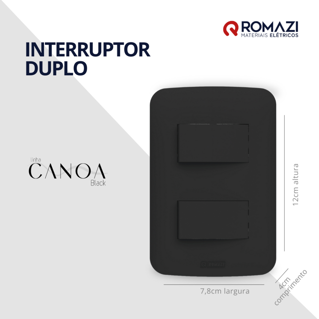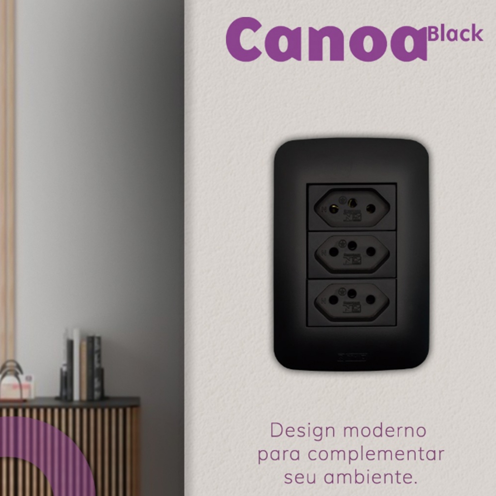 INTERRUPTORES E TOMADAS CANOA BLACK - ROMAZI