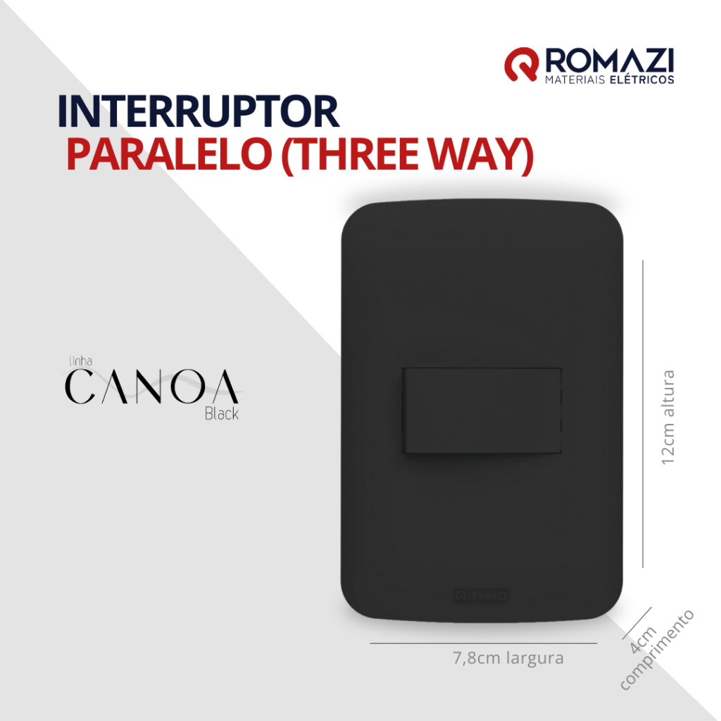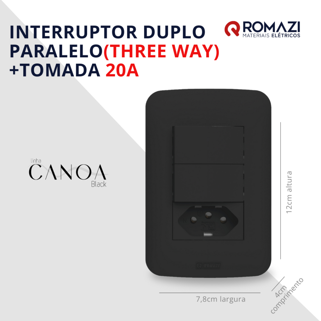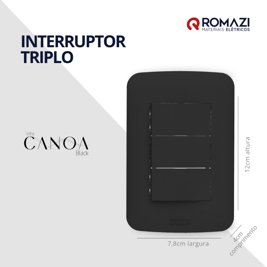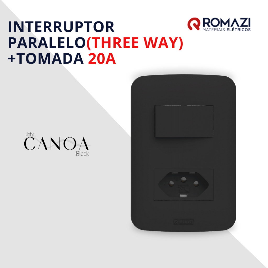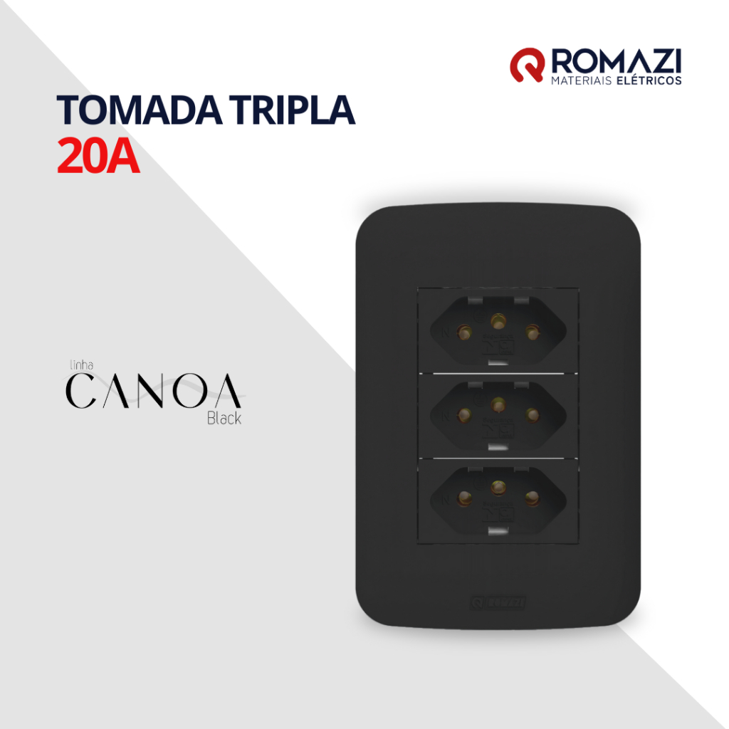 INTERRUPTORES E TOMADAS CANOA BLACK - ROMAZI