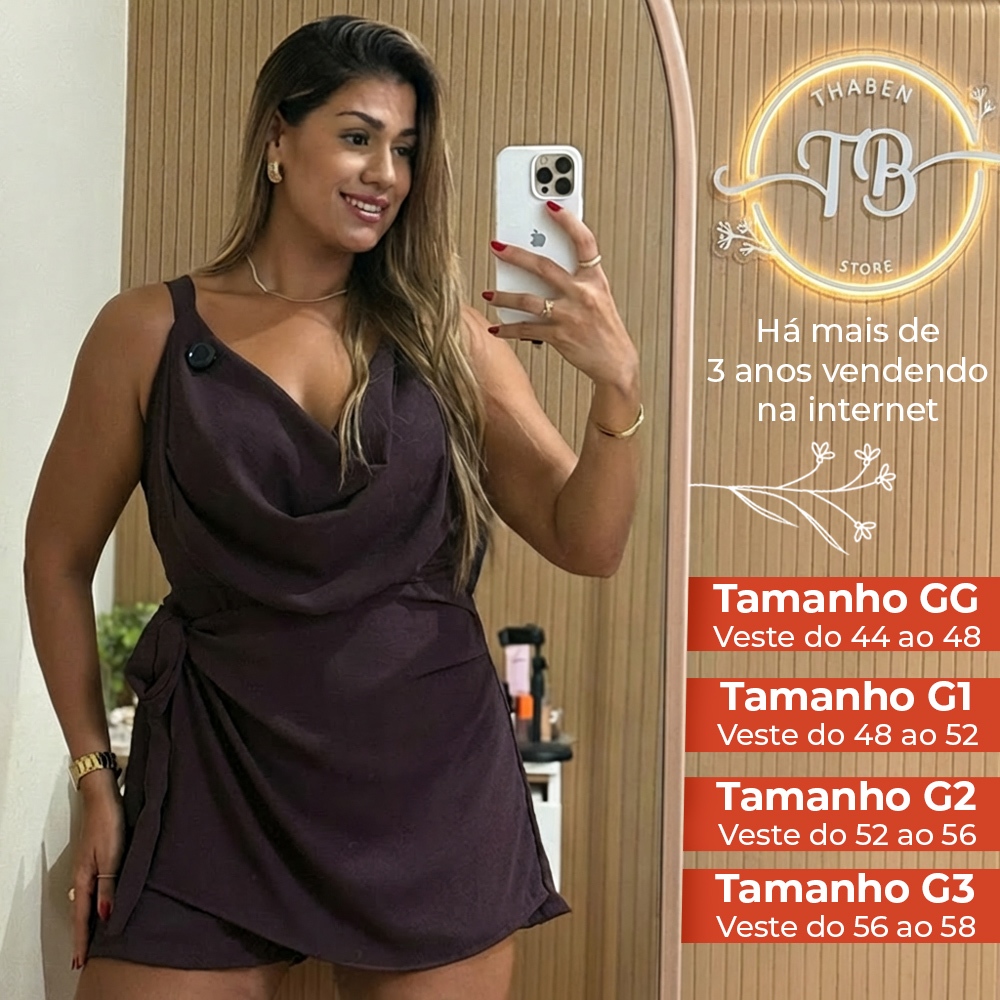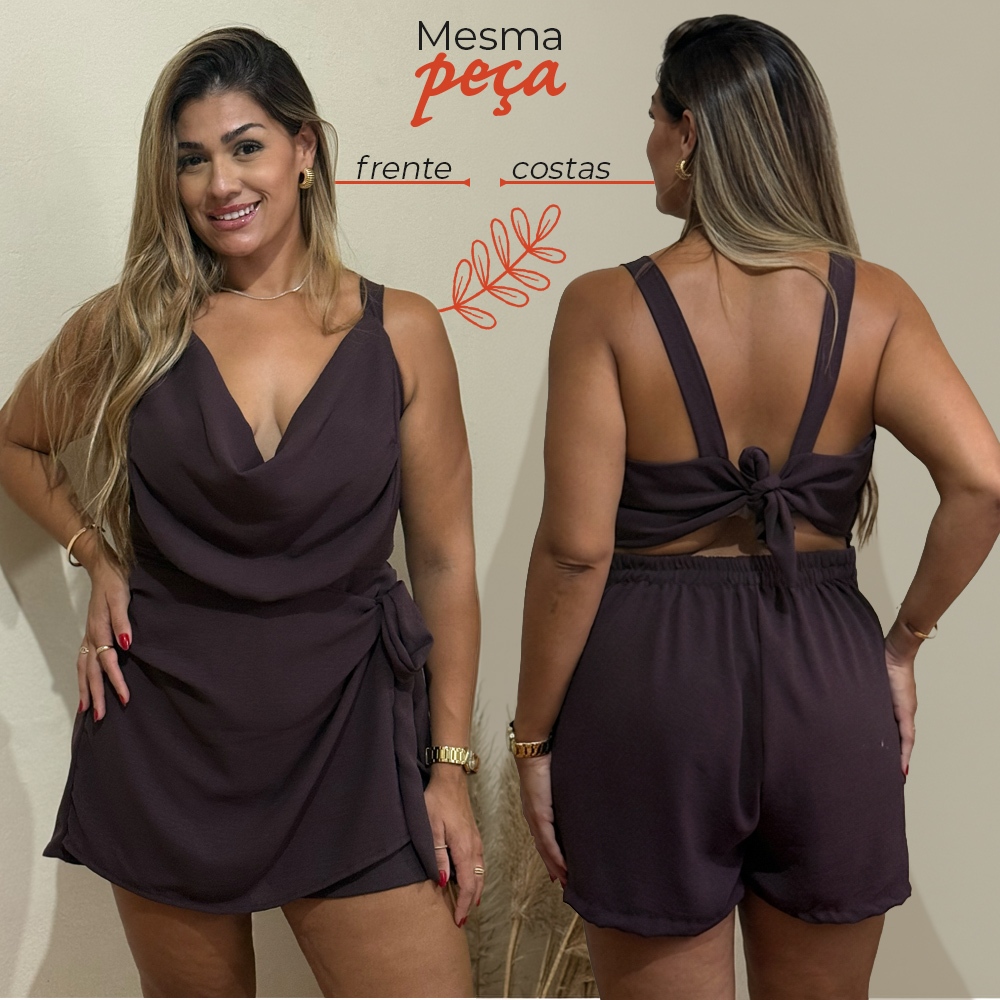 Macaquinho Plus Size Shorts Saia Elegante Curto Decote V Soltinho e Modela o Corpo