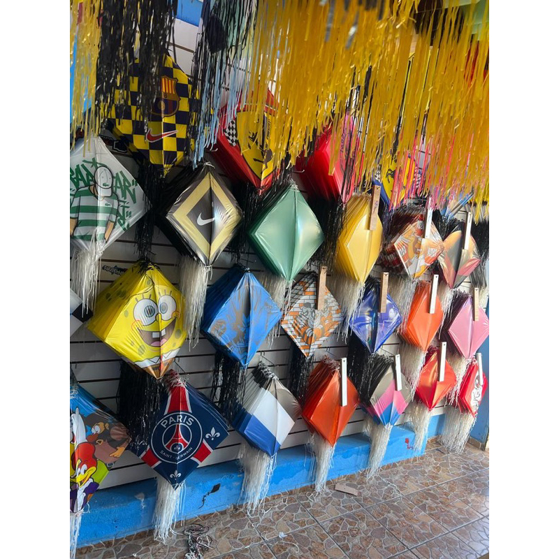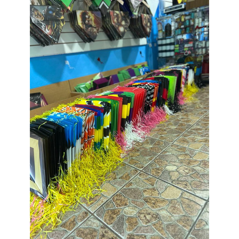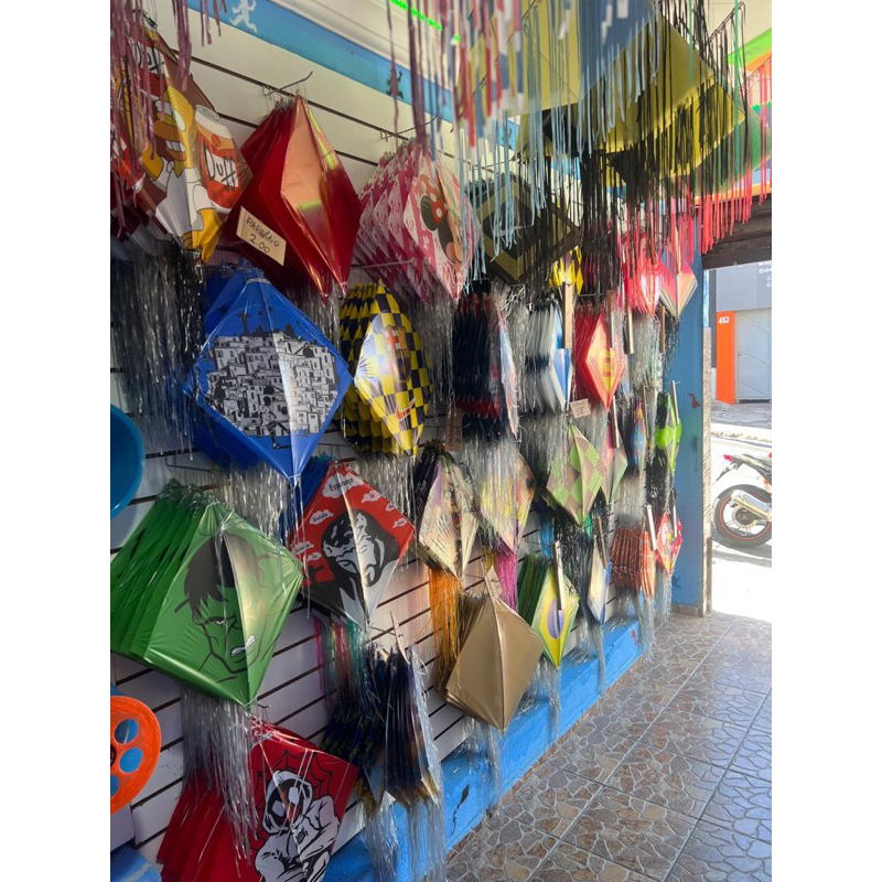 flexinhas / papagaio 35x35 c/ rabiola e barbela (pacote com 10 unid)