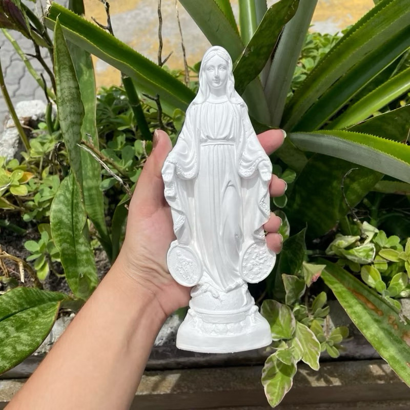 NOSSA SENHORA DAS GRAÇAS OU MEDALHA MILAGROSA 20cm EM GESSO CRU
