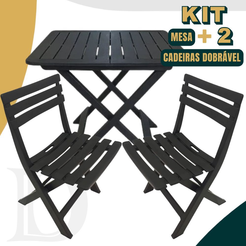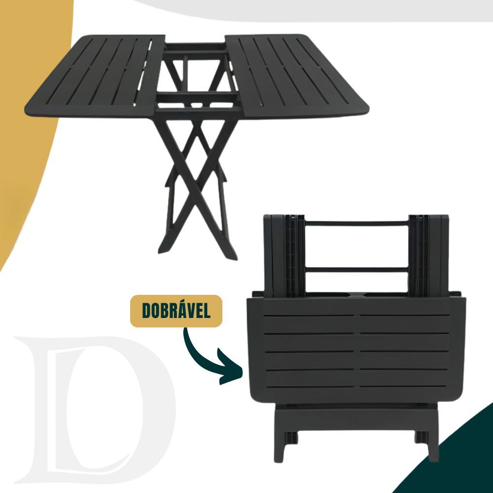 Kit Mesa Quadrada + 4 Cadeiras De Plástico Dobrável Multiuso Casa Área Gourmet