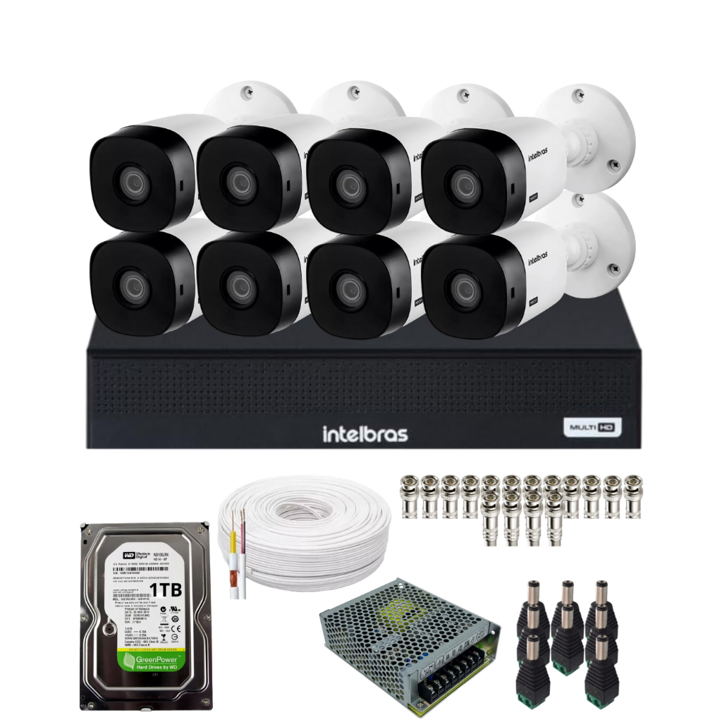 Kit Cftv Monitoramento 8 Cameras Intelbras 1120b Dvr 1108c 1t