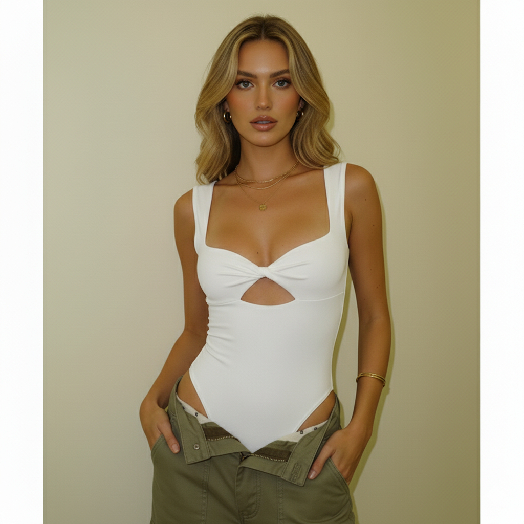 Body Feminino estiloso Tendência 2026 bodysuity BORY NÓ SUPLEX Bodys cavado Boris sexy gringa modinh