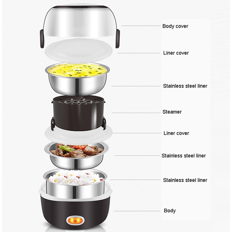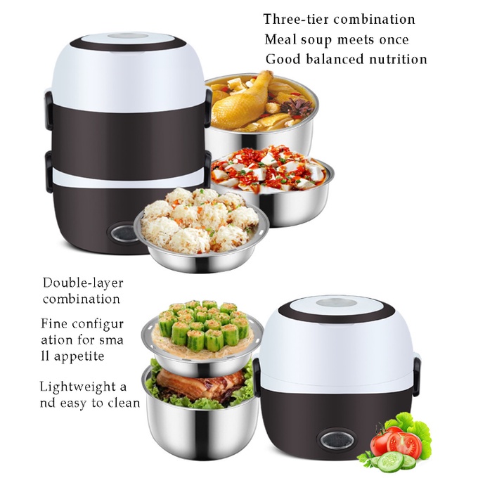 110V-220V Mini Fogão Elétrico De Arroz Panela De Aço Inoxidável 2 Camadas Recipiente Para Alimentos Aquecedor Portátil De Refeição De Caixa De Almoço Bento