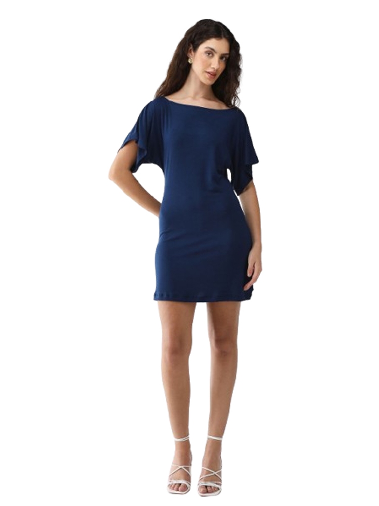 Vestido Curto Azul Marinho em Viscolycra | Maria Paes - Look Fresco e Moderno c/ Toque de Elegância