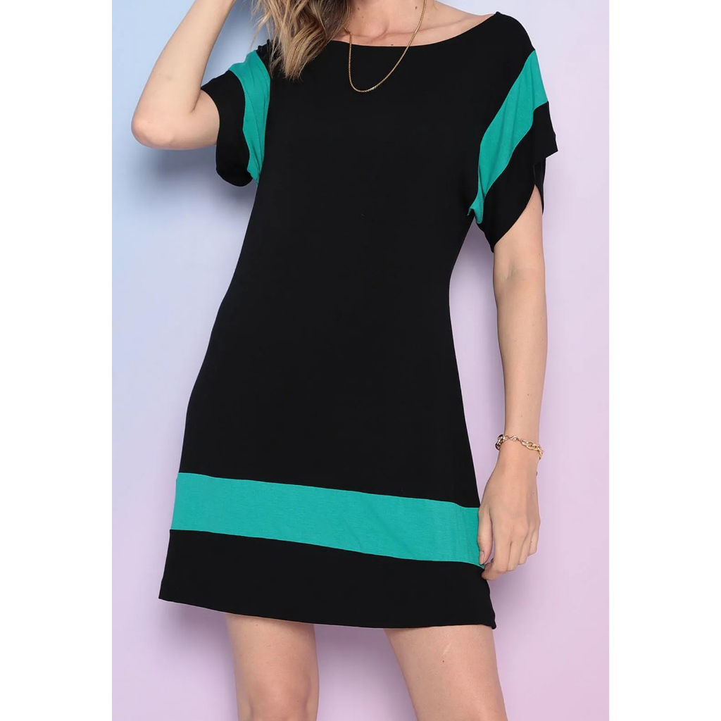 Vestido Maria Paes Curto Preto e Verde