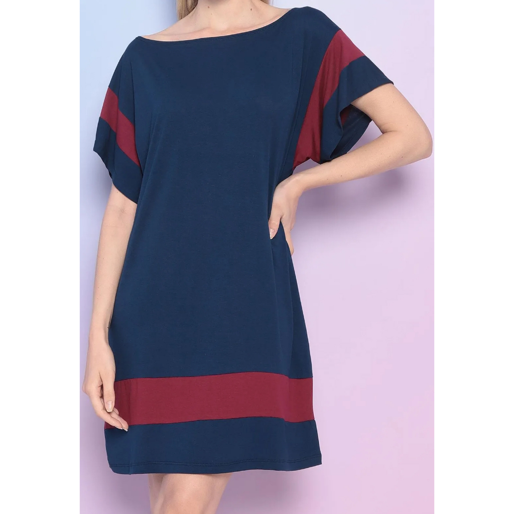 Vestido Maria Pae Curto Marinho e Vinho