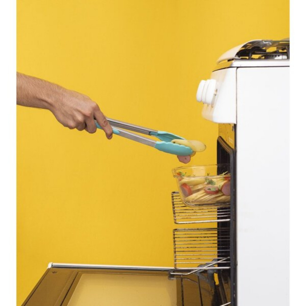 Pegador de Silicone e Inox Com Trava 30cm Para Alimentos Churrasqueira Air Fryer